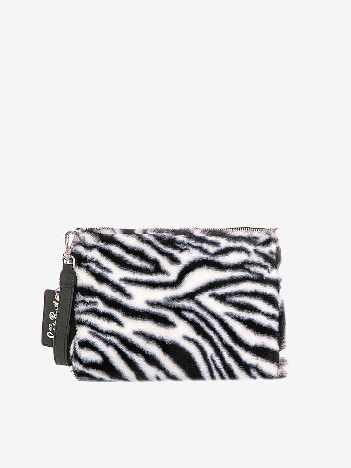 • Pochette Aline effetto lana a con stampa muccata Pochette Aline effetto lana a con stampa muccata