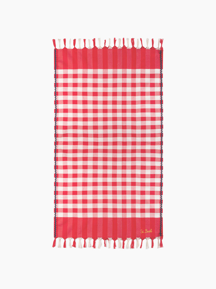 • Fouta with navy blue wave trim and gingham print - MC2 Saint Barth Fouta with navy blue wave trim and gingham print - MC2 Saint Barth