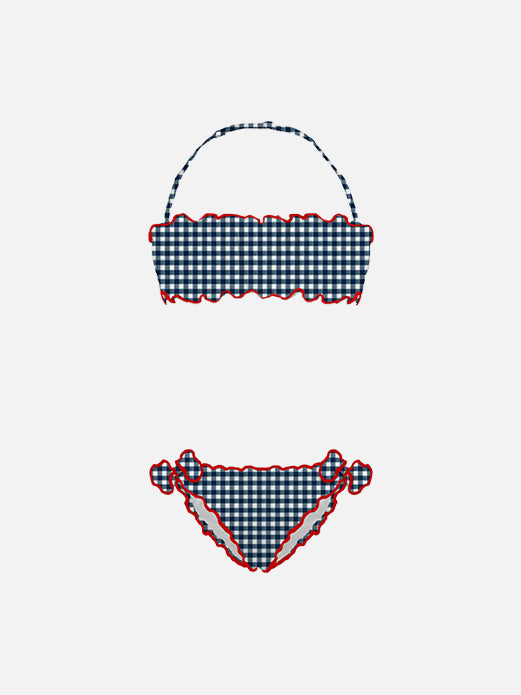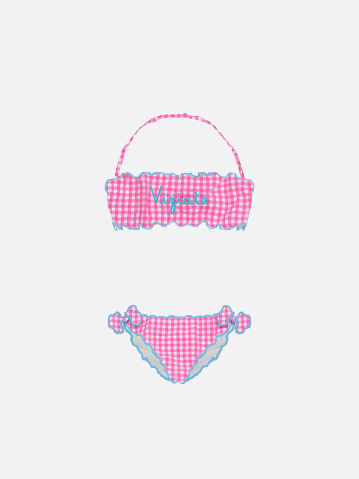• Bikini da bambina a fascia con stampa vichy Bikini da bambina a fascia con stampa vichy