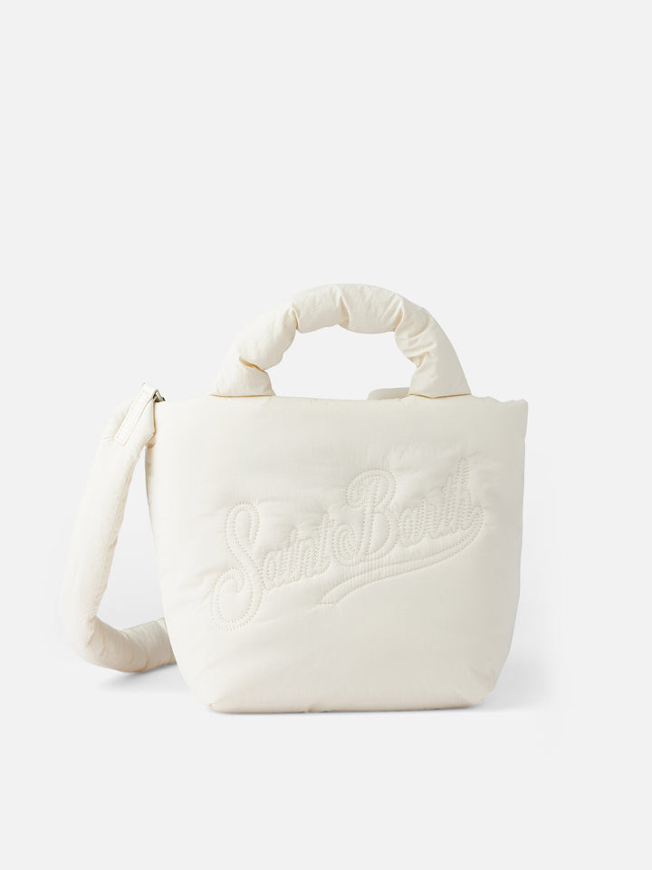 • Light blue rib knit Colette handbag with logo embroidery - MC2 Saint Barth Light blue rib knit Colette handbag with logo embroidery - MC2 Saint Barth