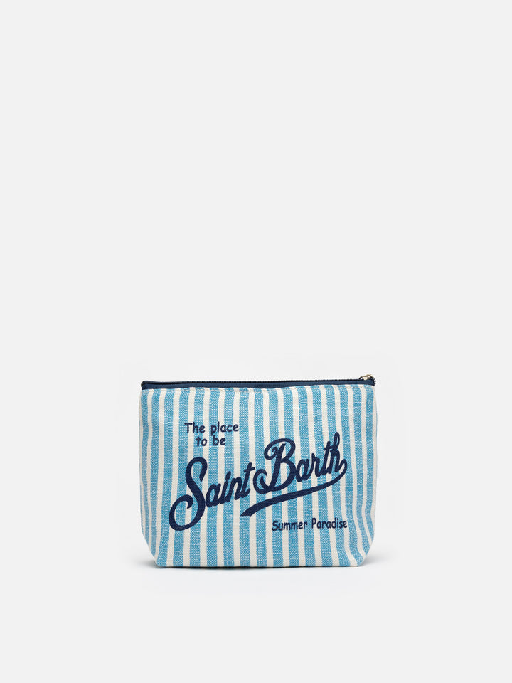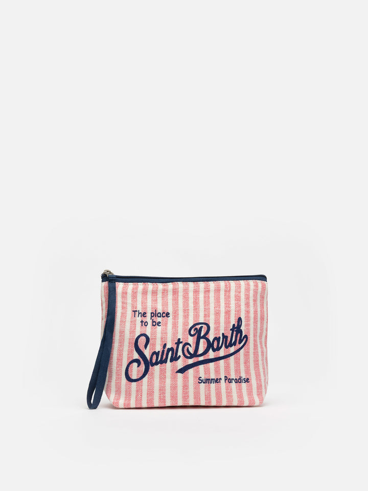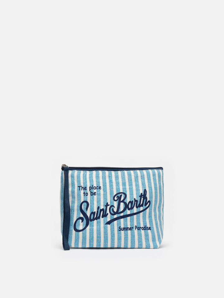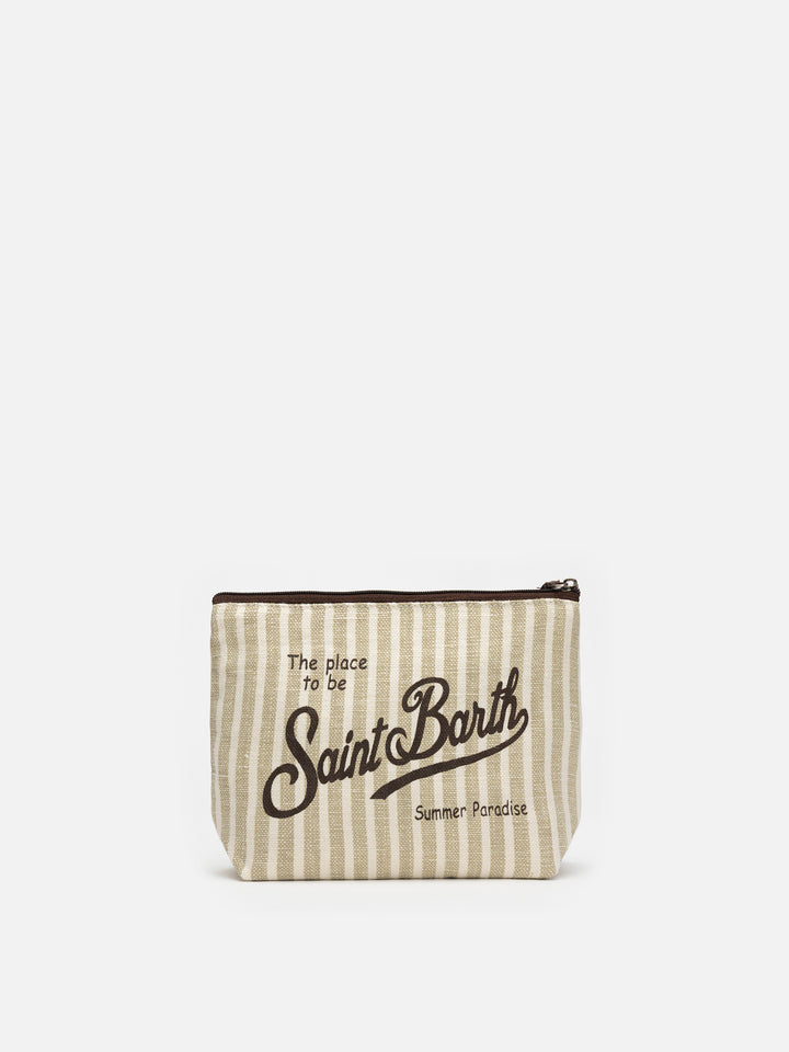 • Borsa Mini Vanity in 100% LINO con stampa a righe Mini Vanity Linen bag with striped print - MC2 Saint Barth