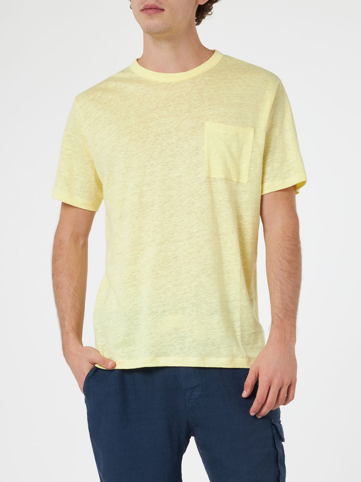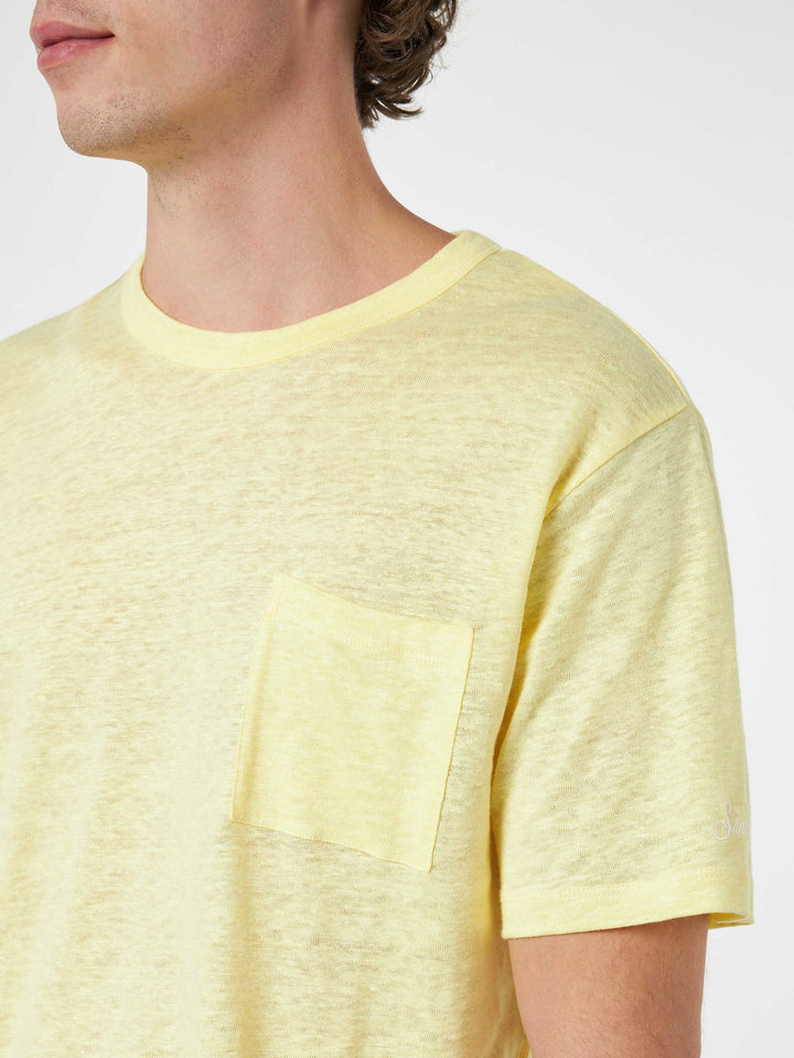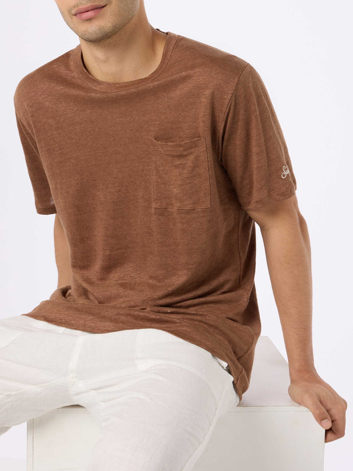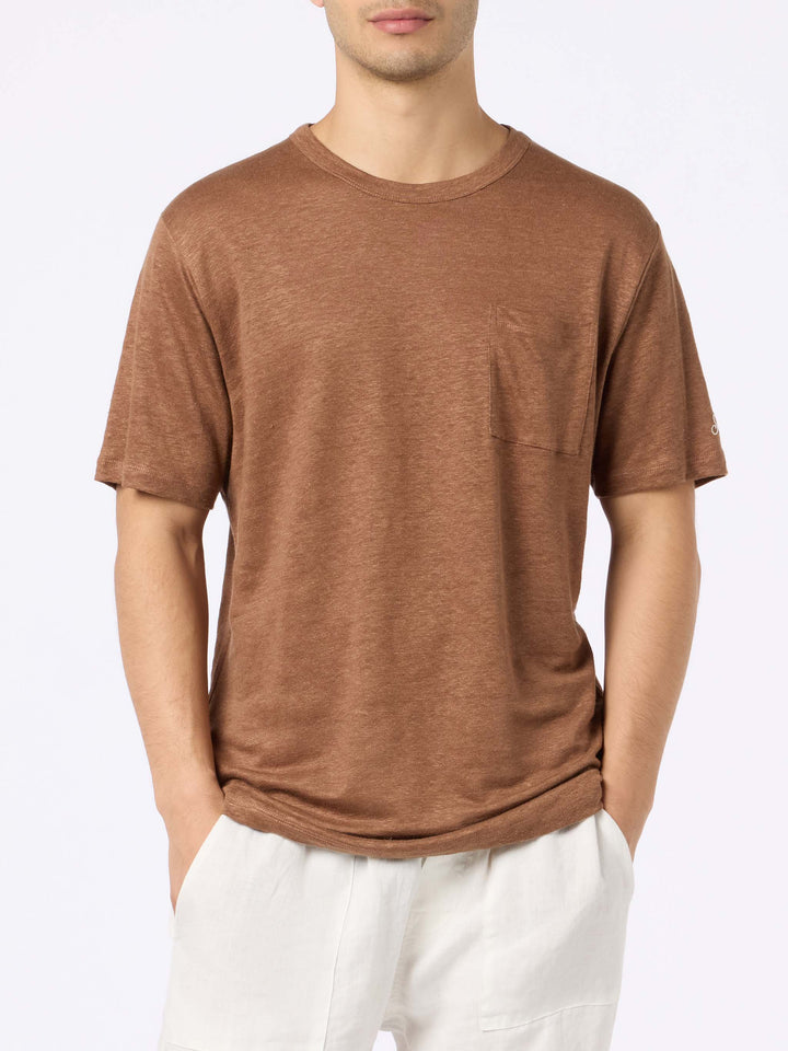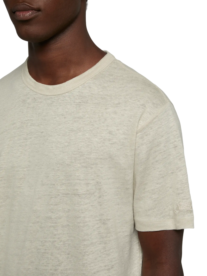 • Man beige linen jersey t-shirt Ecstasea with pocket - MC2 Saint Barth Man beige linen jersey t-shirt Ecstasea with pocket - MC2 Saint Barth