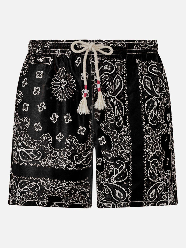 • Mid-length swim-shorts Caprese with black bandanna print - MC2 Saint Barth Mid-length swim-shorts Caprese with black bandanna print - MC2 Saint Barth