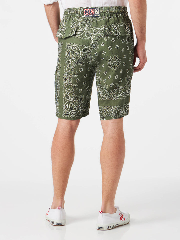 • Man linen bermuda shorts with military green bandanna print - MC2 Saint Barth Man linen bermuda shorts with military green bandanna print - MC2 Saint Barth