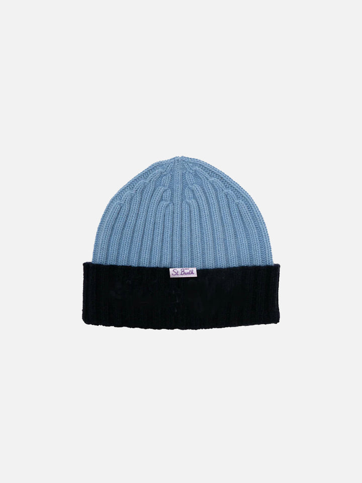• Berretto  Wengen in cashmere azzurro con Ricamo St. Barth sul risvolto Berretto  Wengen in cashmere azzurro con Ricamo St. Barth sul risvolto