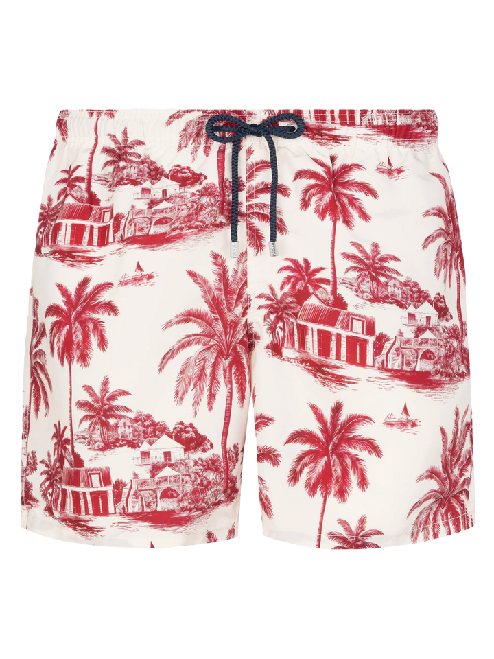 • Lightweight fabric swim shorts Lighting with palms and planes print - MC2 Saint Barth Lightweight fabric swim shorts Lighting with palms and planes print - MC2 Saint Barth