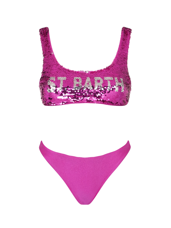 • Amalia pink wide-leg georgette trousers with rhinestone embellishment - MC2 Saint Barth Amalia pink wide-leg georgette trousers with rhinestone embellishment - MC2 Saint Barth