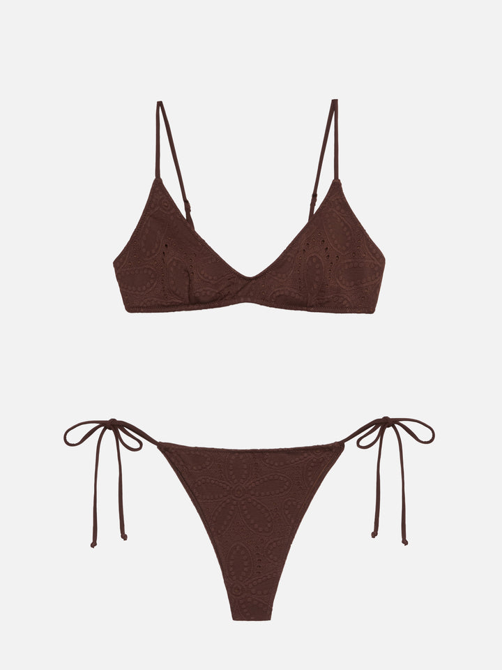 • Bikini bralette a triangolo classico Leda Yali in pizzo sangallo marrone Bikini bralette a triangolo classico Leda Yali in pizzo sangallo marrone