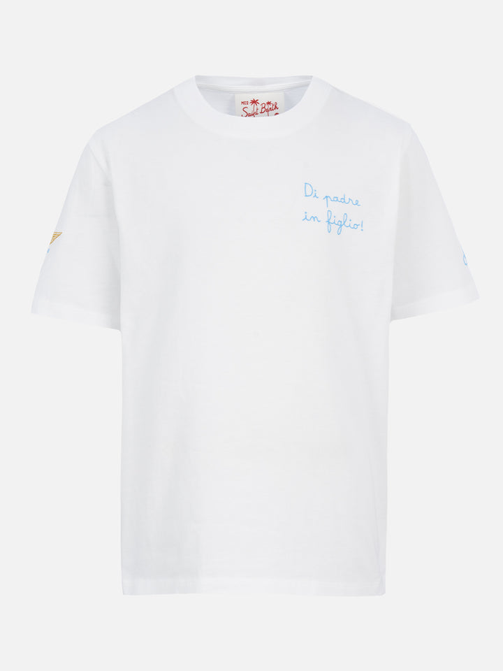 • Boy cotton t-shirt with Di Padre in Figlio embroidery | SS LAZIO SPECIAL EDITION - MC2 Saint Barth Boy cotton t-shirt with Di Padre in Figlio embroidery | SS LAZIO SPECIAL EDITION - MC2 Saint Barth