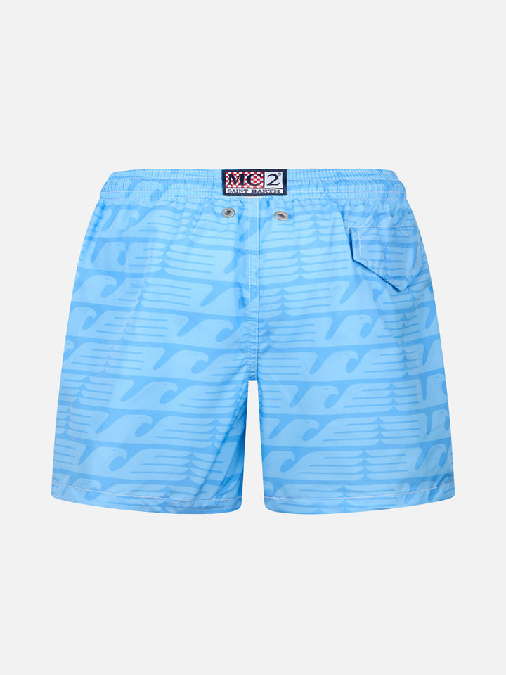 • Costume da bagno da uomo in tessuto leggero con stampa logo Lazio | SS LAZIO SPECIAL EDITION Man lightweight fabric swim shorts with Lazio logo print | SS LAZIO SPECIAL EDITION - MC2 Saint Barth