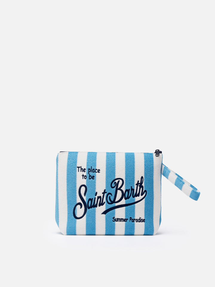 • Borsa Colette in spugna azzurra con stampa a righe azzurre Colette Sponge light blue striped terry handbag - MC2 Saint Barth