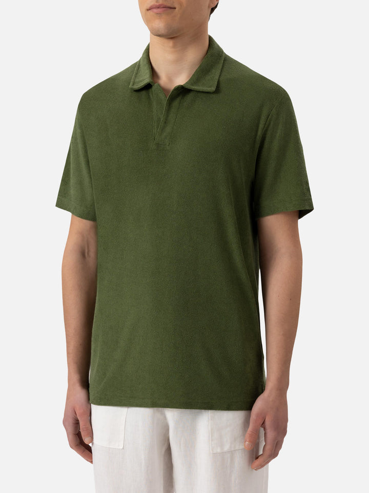 • Jeremy military green terry buttonless polo shirt - MC2 Saint Barth Jeremy military green terry buttonless polo shirt - MC2 Saint Barth