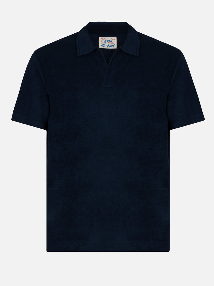 • Sloan navy blue buttonless terry polo shirt - MC2 Saint Barth Polo Sloan Terry senza bottoni in spugna blu navy
