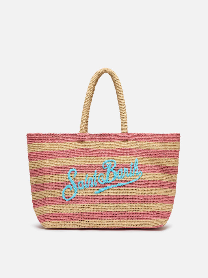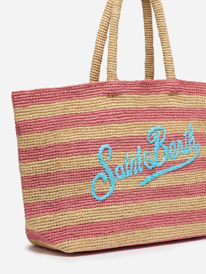 • Beige Raffia Beach bag with cotton pouch and Mykonos embroidery - MC2 Saint Barth Beige Raffia Beach bag with cotton pouch and Mykonos embroidery - MC2 Saint Barth
