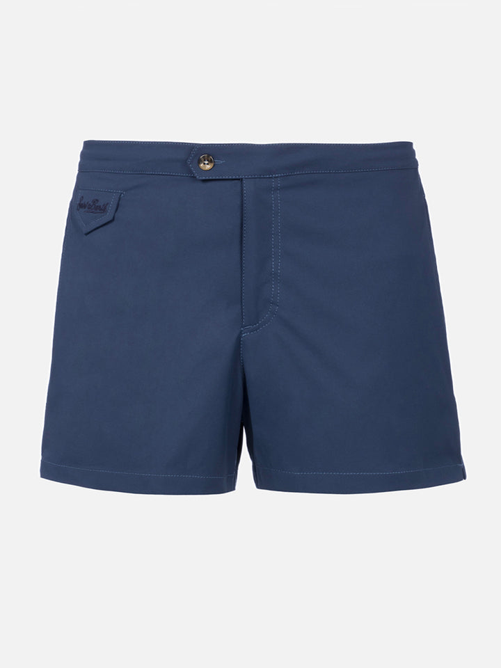 • Marineblaue Comfort Badeshorts mit St. Barth Stickerei Marineblaue Comfort Badeshorts mit St. Barth Stickerei