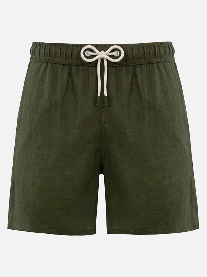 • Mittellange militärgrüne Leinen-Badeshorts Gustavia Mittellange militärgrüne Leinen-Badeshorts Gustavia