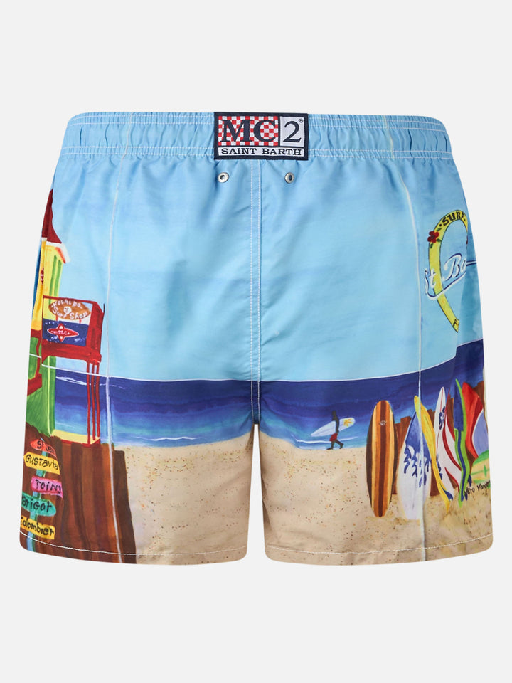 • Mid-length Gustavia swim-shorts with Miami postcard placed print - MC2 Saint Barth Mid-length Gustavia swim-shorts with Miami postcard placed print - MC2 Saint Barth