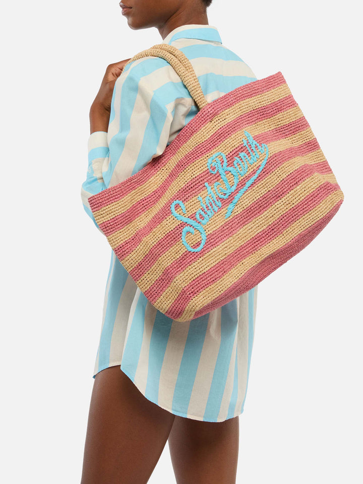 • Beige Raffia City Mid bag with Saint Barth embroidered logo - MC2 Saint Barth Beige Raffia City Mid bag with Saint Barth embroidered logo - MC2 Saint Barth