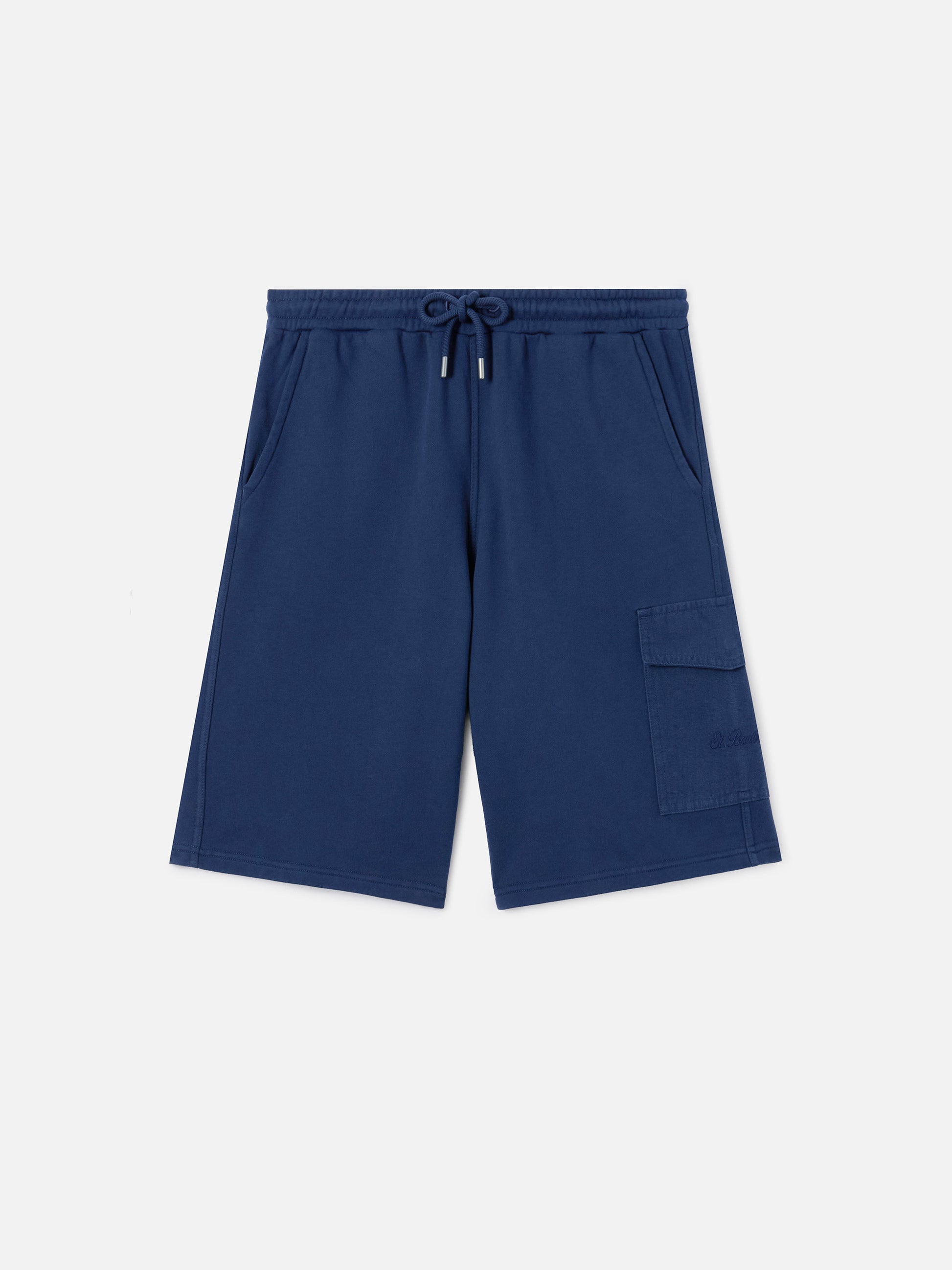 Bermuda Argo in felpa tinta unita blu navy con tasca cargo