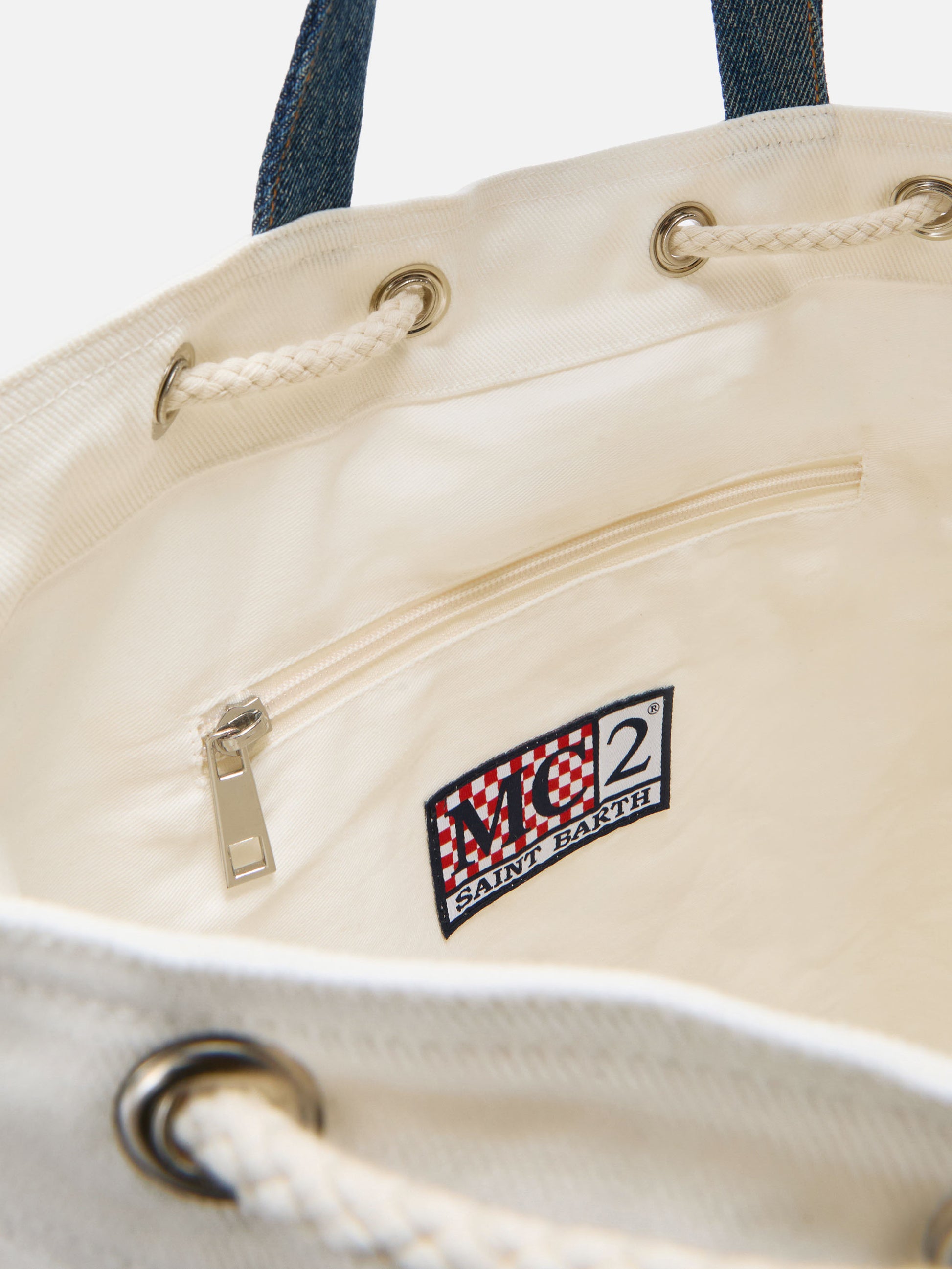 Zaino Beach Backpack in tessuto bianco e azzurro con logo ricamato