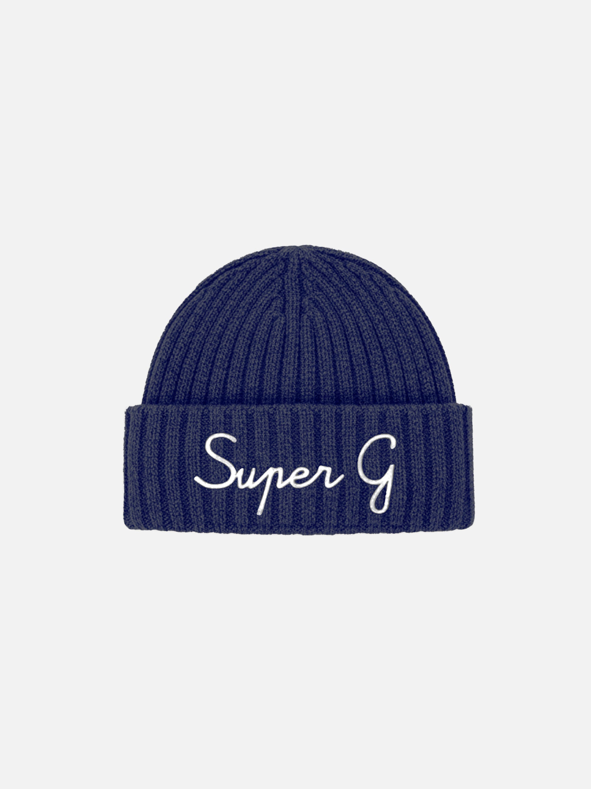 Beanie Wengen in misto cashmere blu con ricamo Super G | SUPER G SPECIAL EDITION