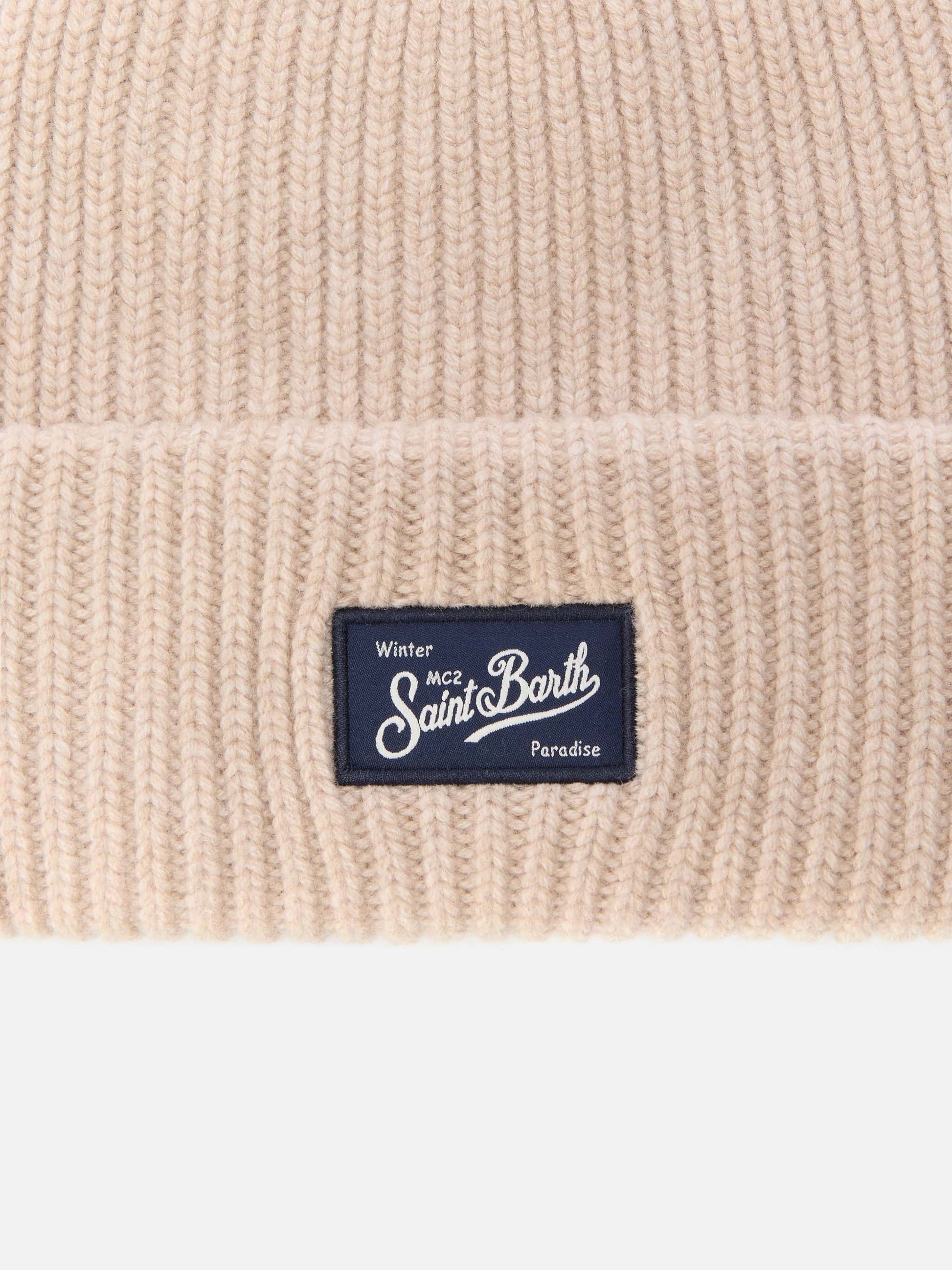 Berry W gerippte Mütze aus Kaschmir-Mischgewebe in Beige