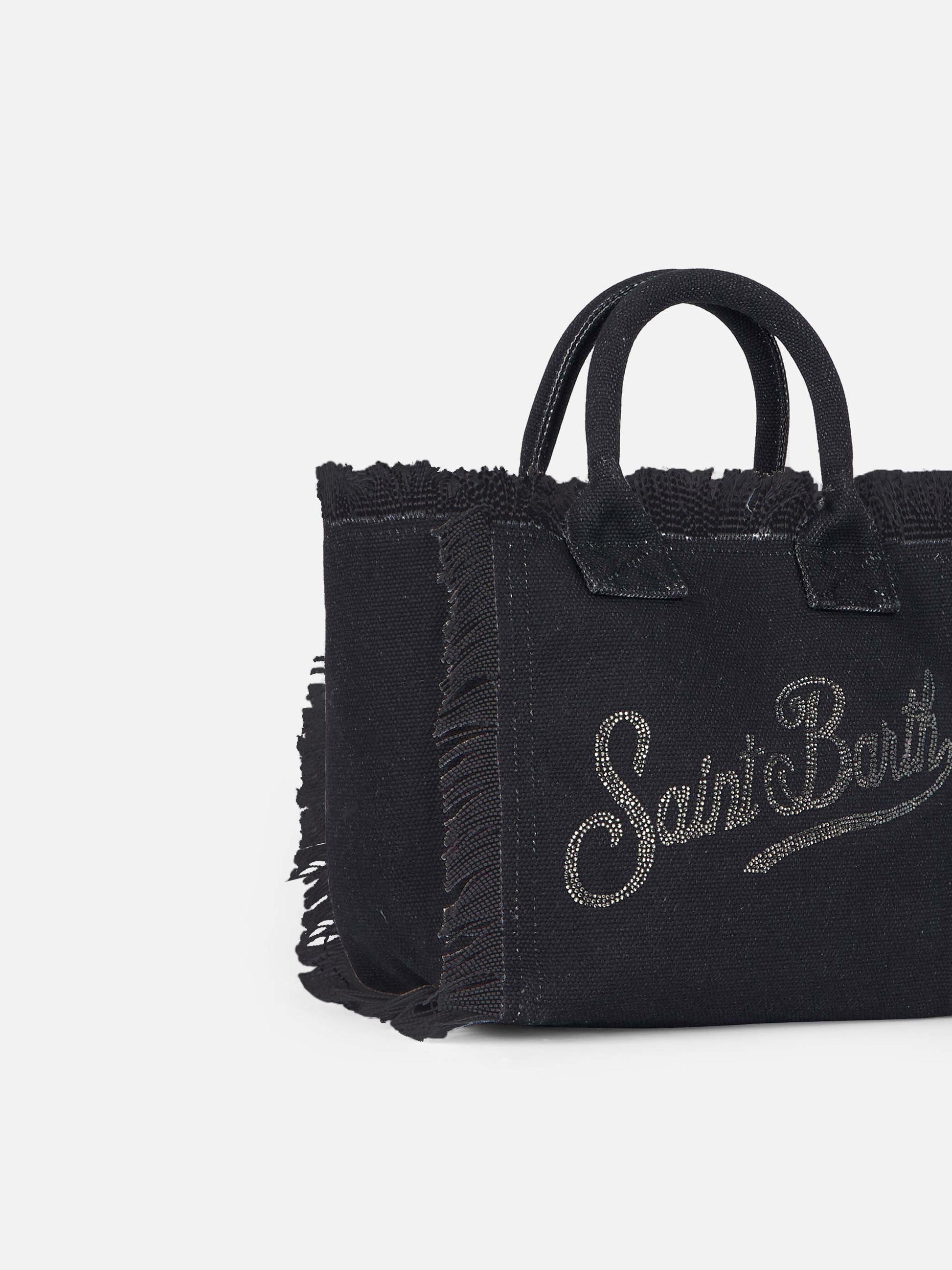 Schwarze Colette-Handtasche aus Baumwollcanvas mit Strasssteinen