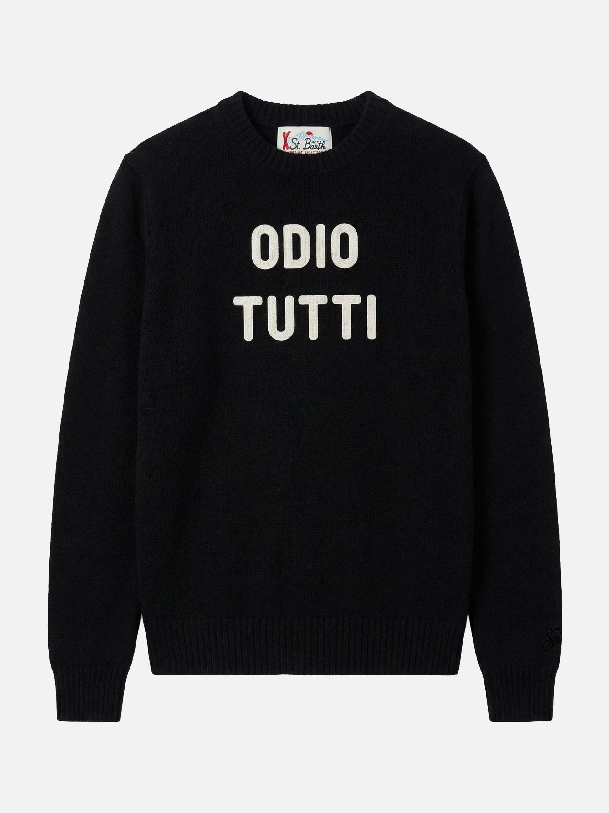 Heron è il maglione da uomo che combina eleganza e versatilità in un design impeccabile. Disponibile in diverse versioni, è realizzato con materiali di alta qualità che garantiscono comfort duraturo e una vestibilità perfetta. Il design raffinato e le finiture accurate rendono Heron adatto a molte occasioni. Con dettagli sofisticati e una silhouette moderna, è il capo ideale per aggiungere un tocco di classe al guardaroba. Maglione girocollo uomo Colorenero tinta unita Odio tutti jacquard Colletto, polsini e orlo a coste Logo Saint Barth ricamato sul polsino Vestibilità regolare Composizione: 20% cashmere, 35% lana, 30% viscosa, 15% poliammide.