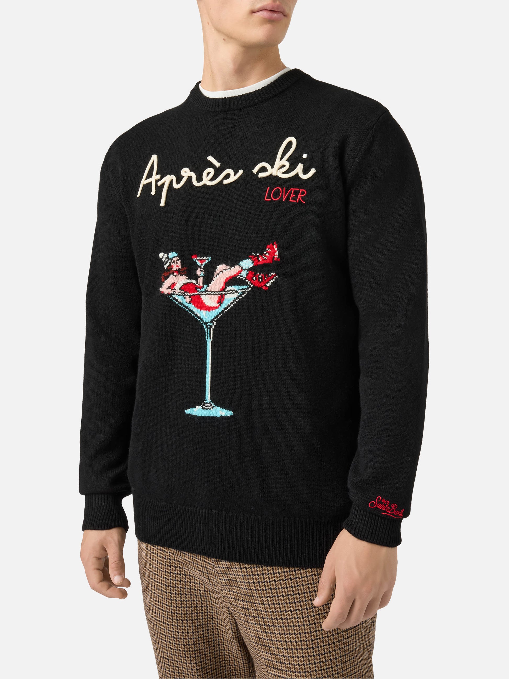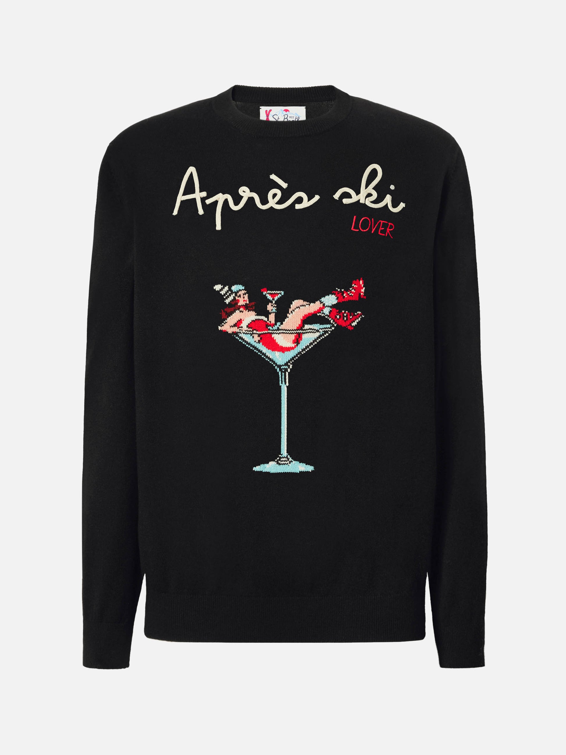 Schwarzer Heron-Pullover mit Après-Ski-Liebesstickerei