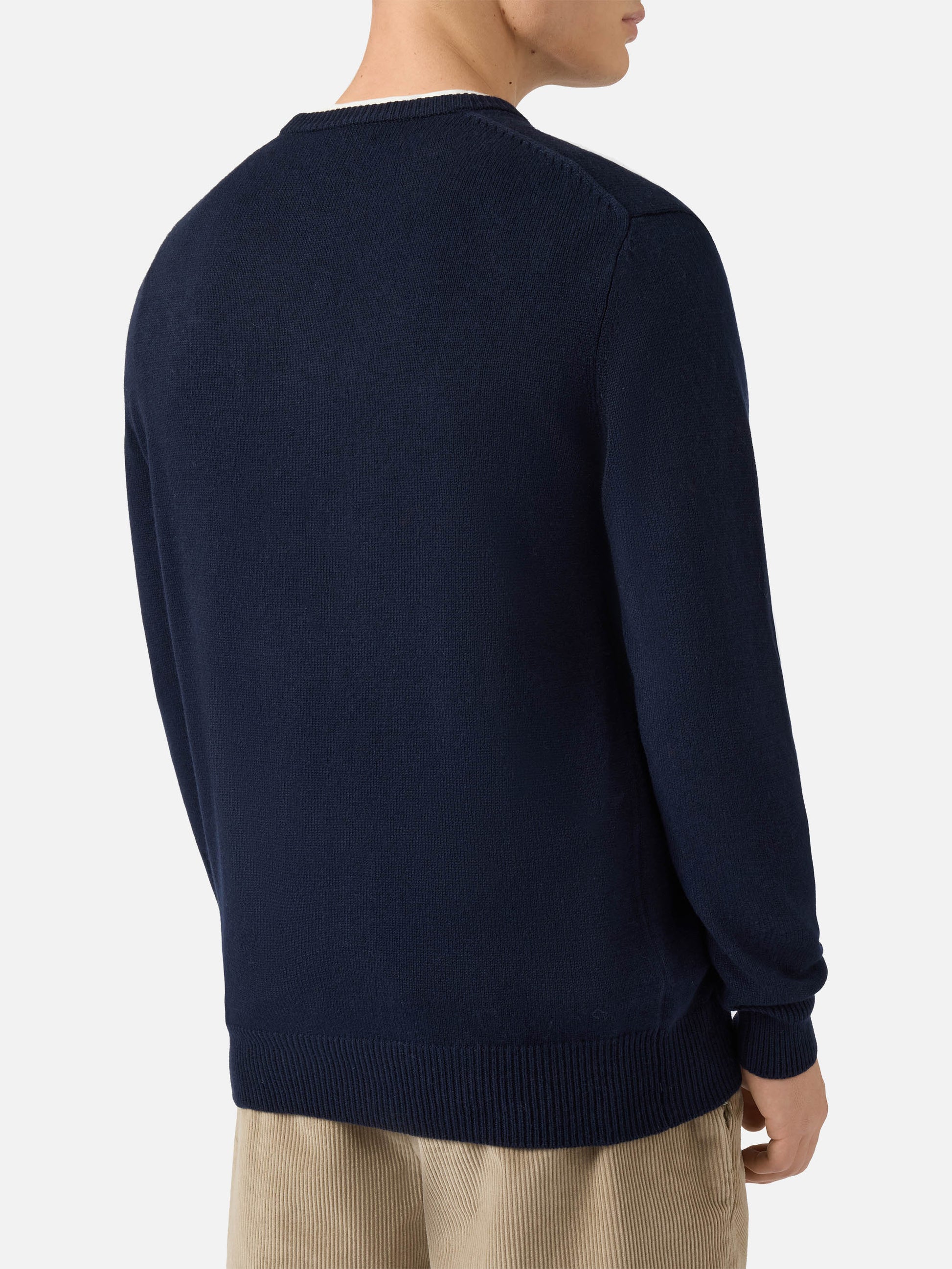 Blauer Pullover mit Reihermotiv und Sbagliato-Stickerei