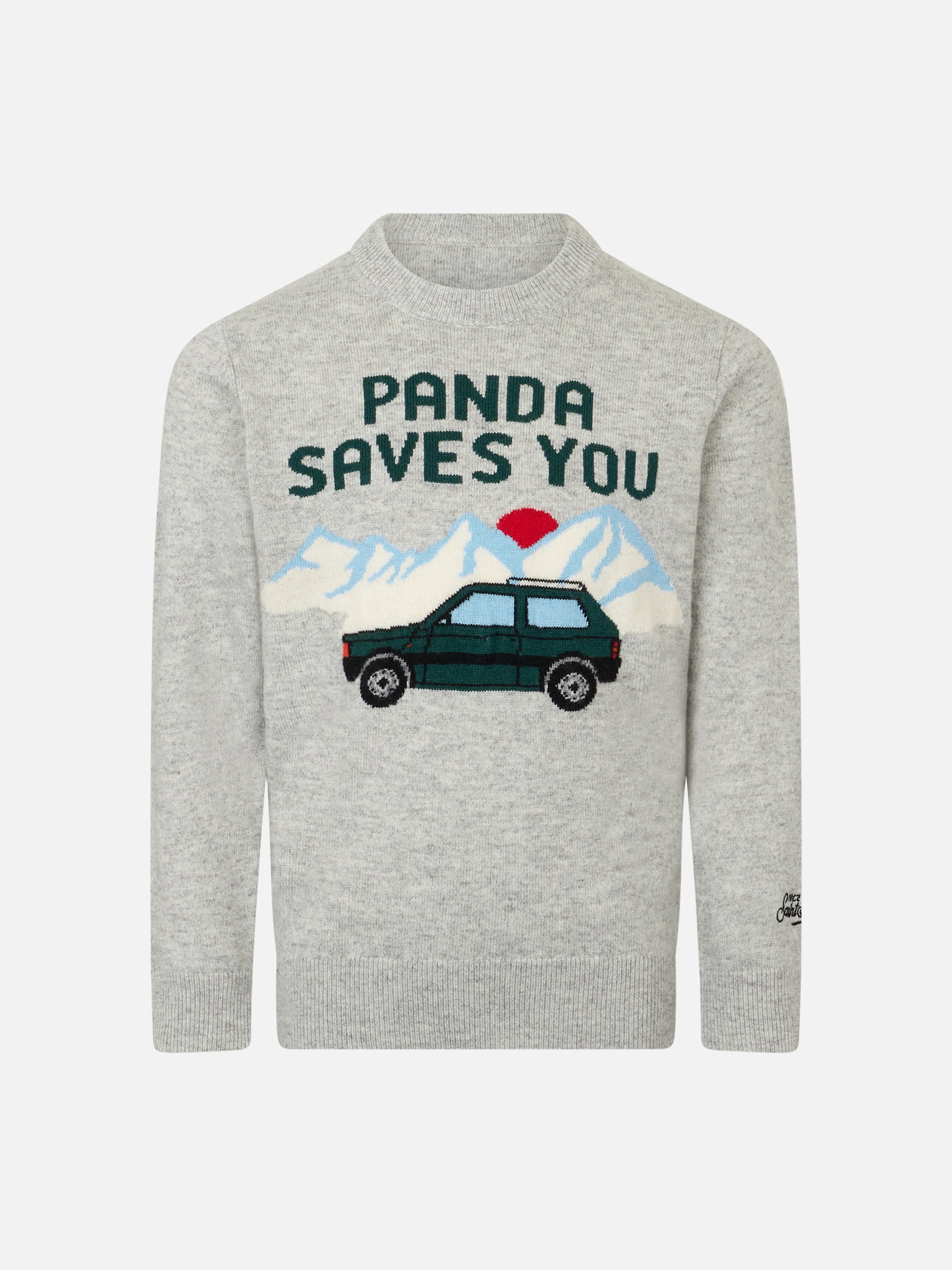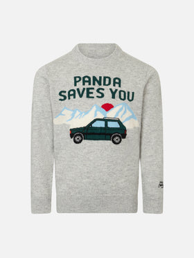 Rundhalspullover für Jungen mit Panda saves you Jacquard