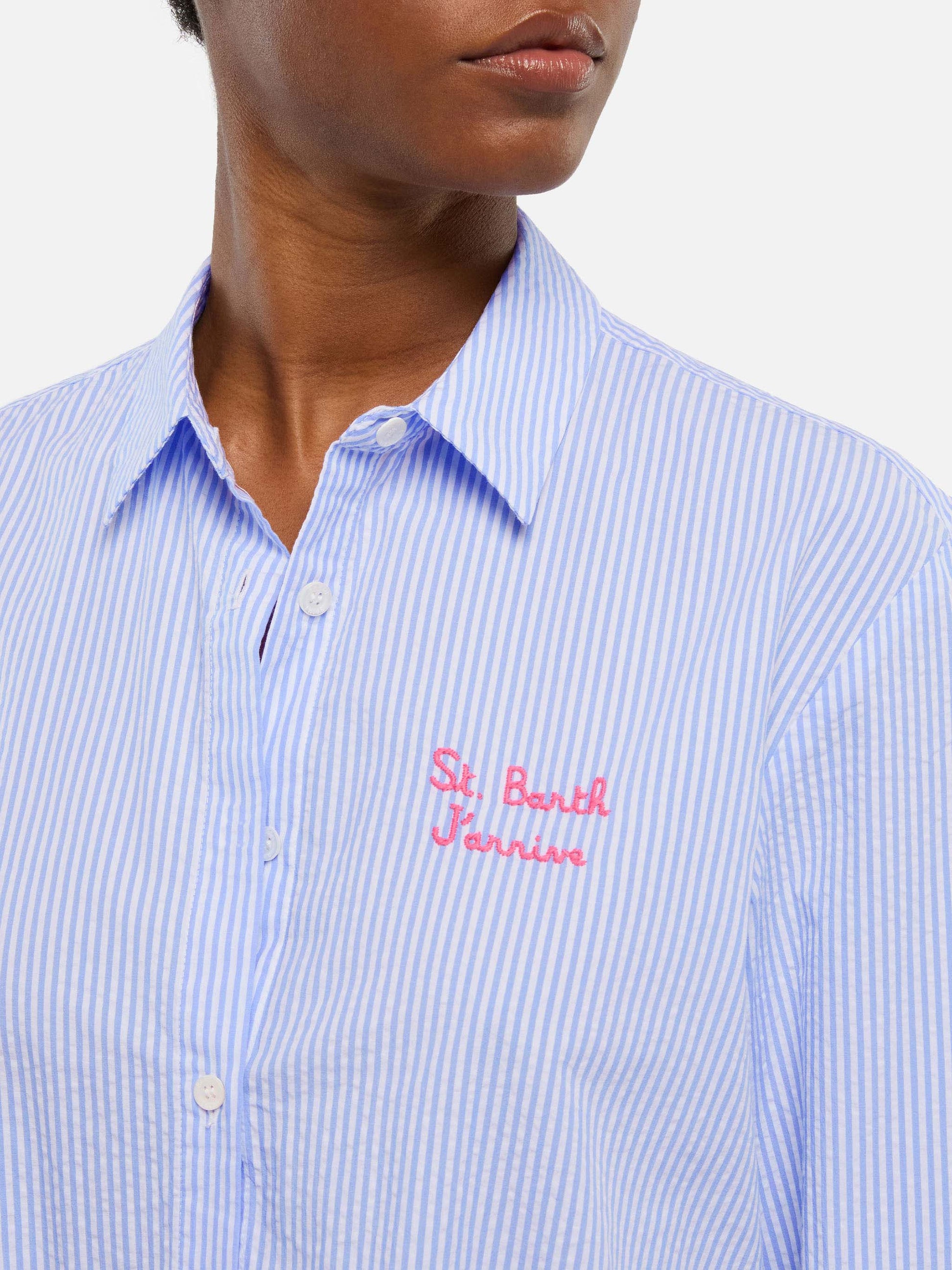 Brigitte gestreiftes Seersucker-Hemd mit Snoopy-Print