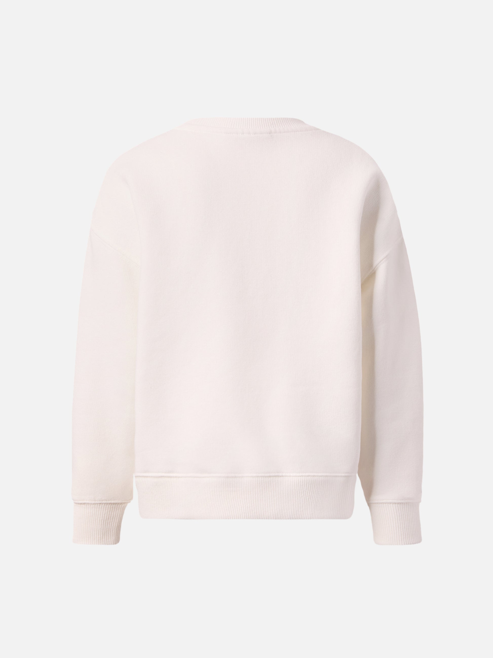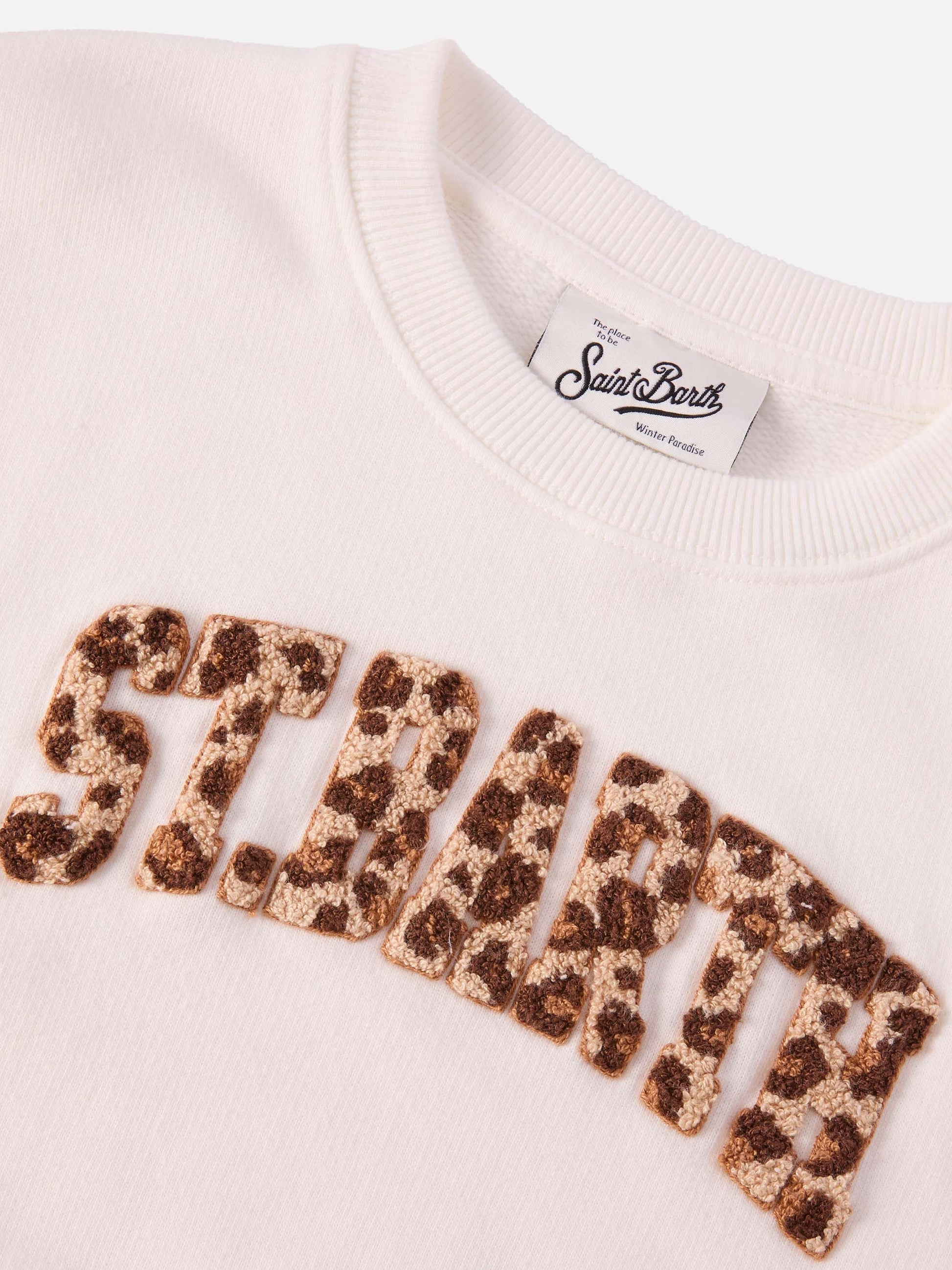 Briony-Sweatshirt mit Rundhalsausschnitt aus weißem Frottee mit Leopardenmuster.