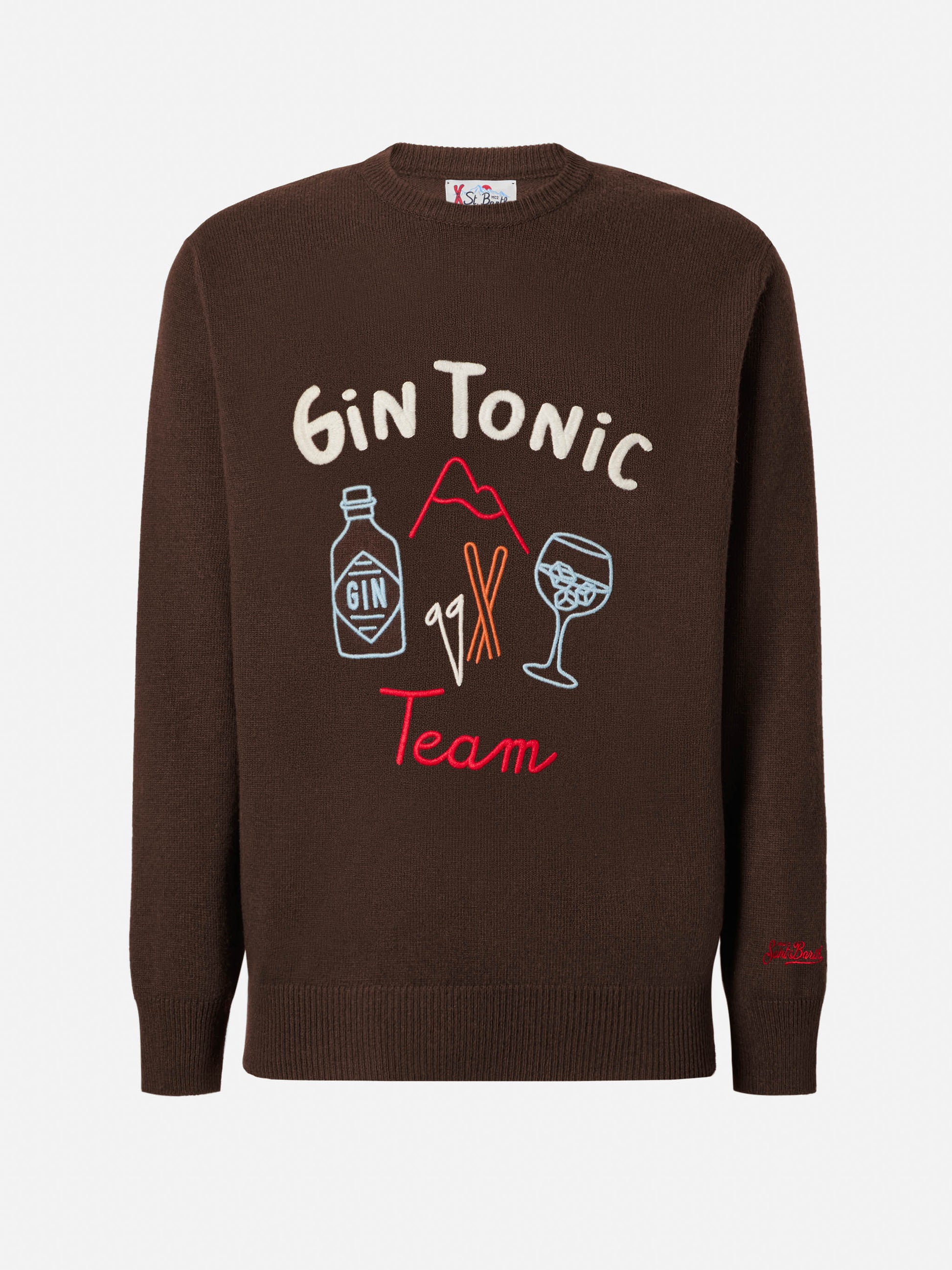 Brauner Heron-Pullover mit Rundhalsausschnitt und Gin-Tonic-Team-Stickerei