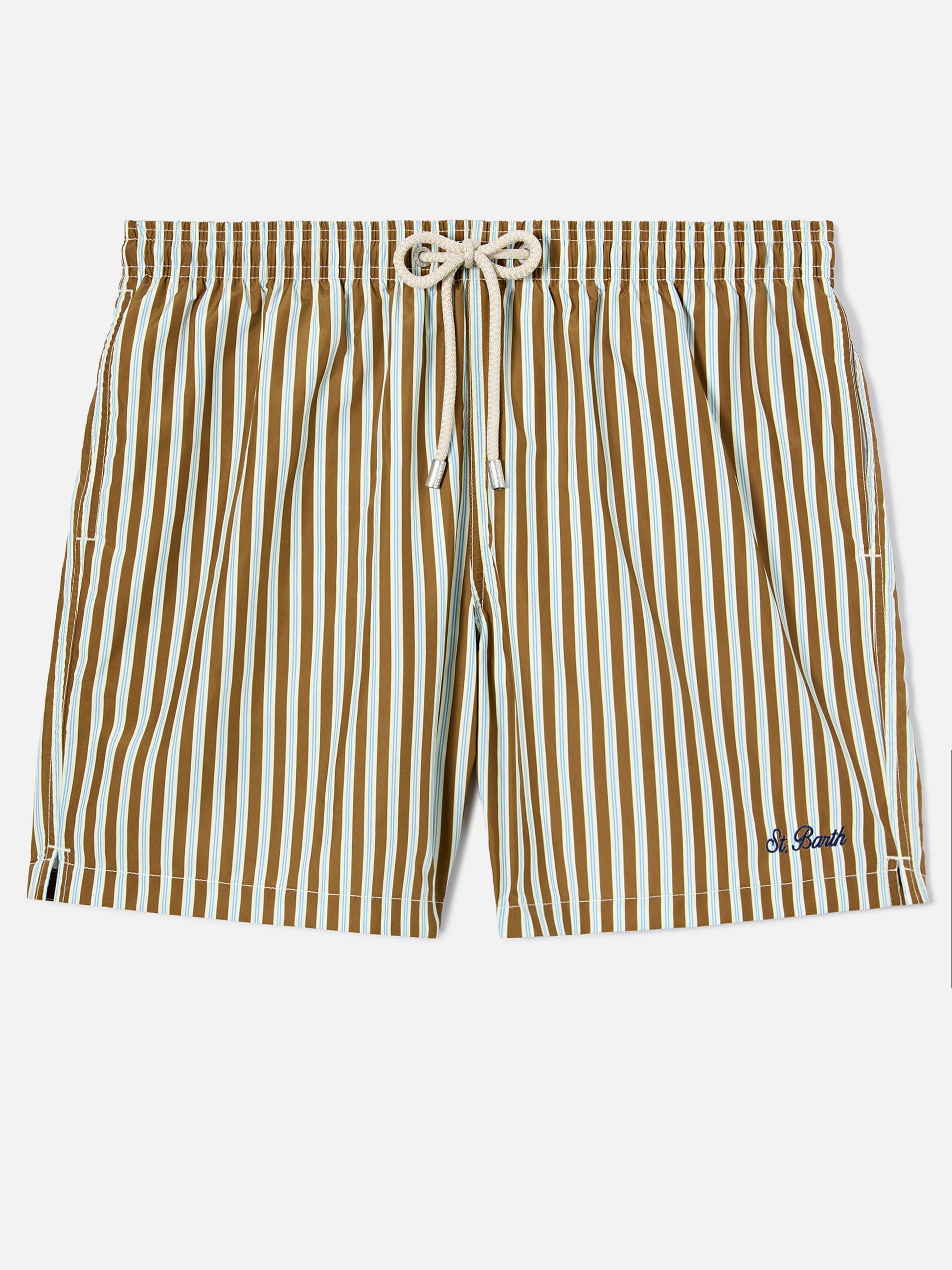 Costume mare Lighting a righe marroni con ricamo St. Barth