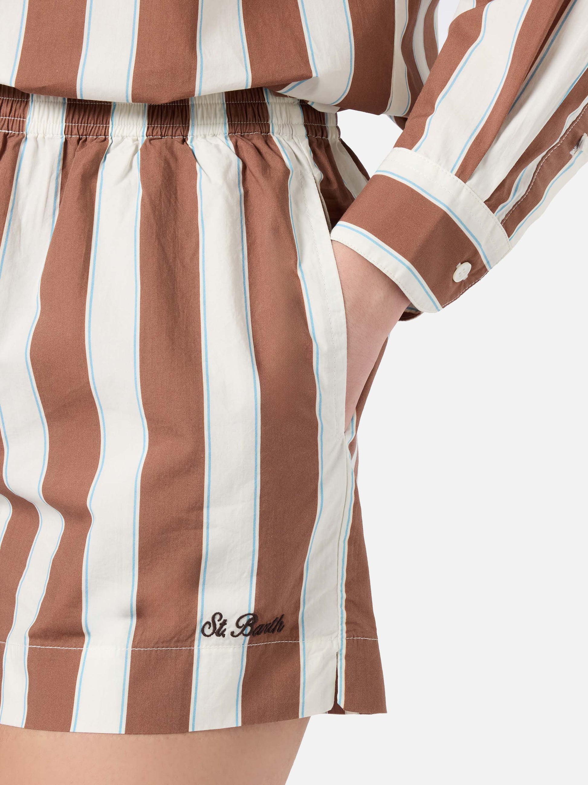 Shorts Meave in cotone a righe marroni