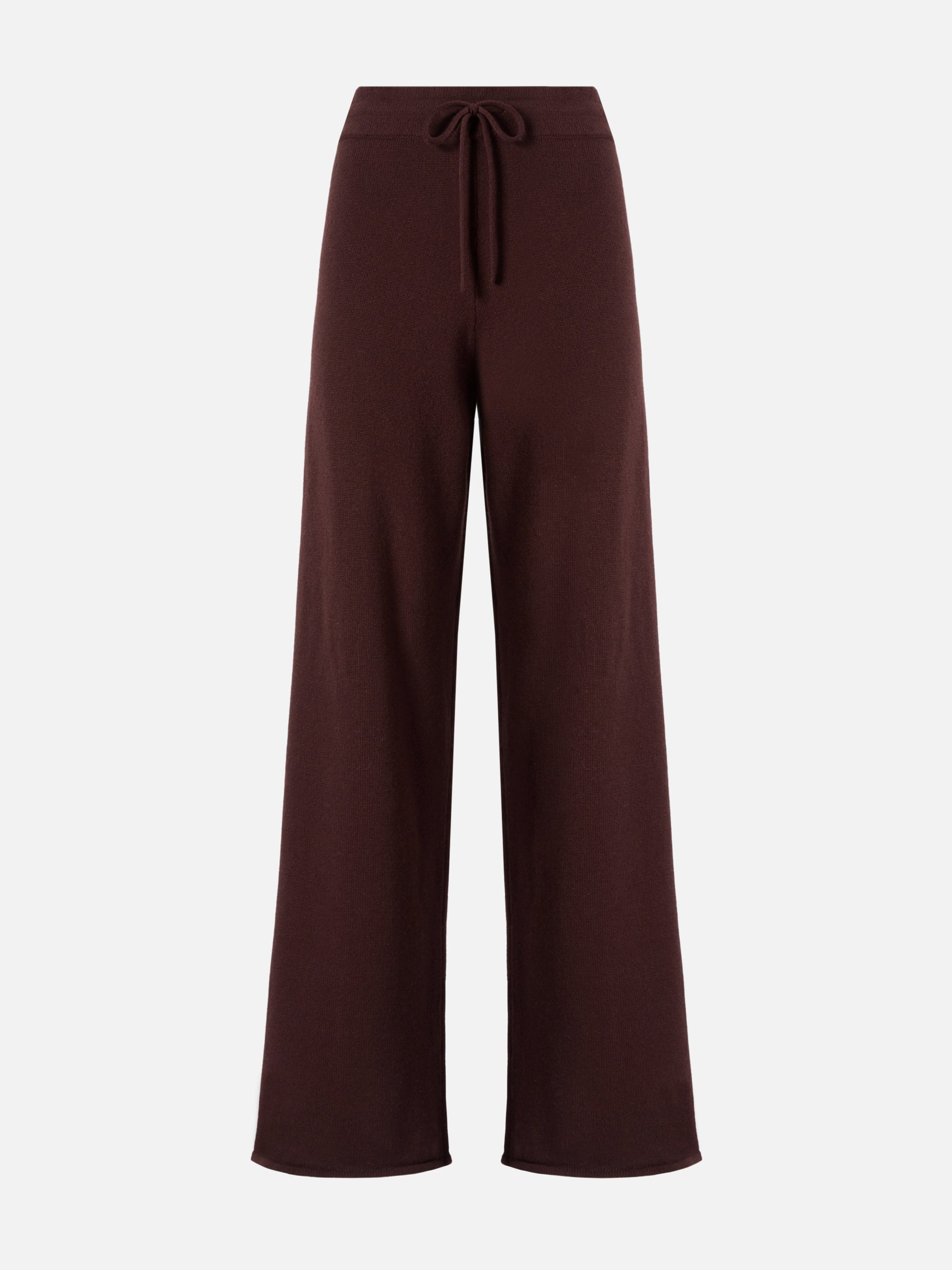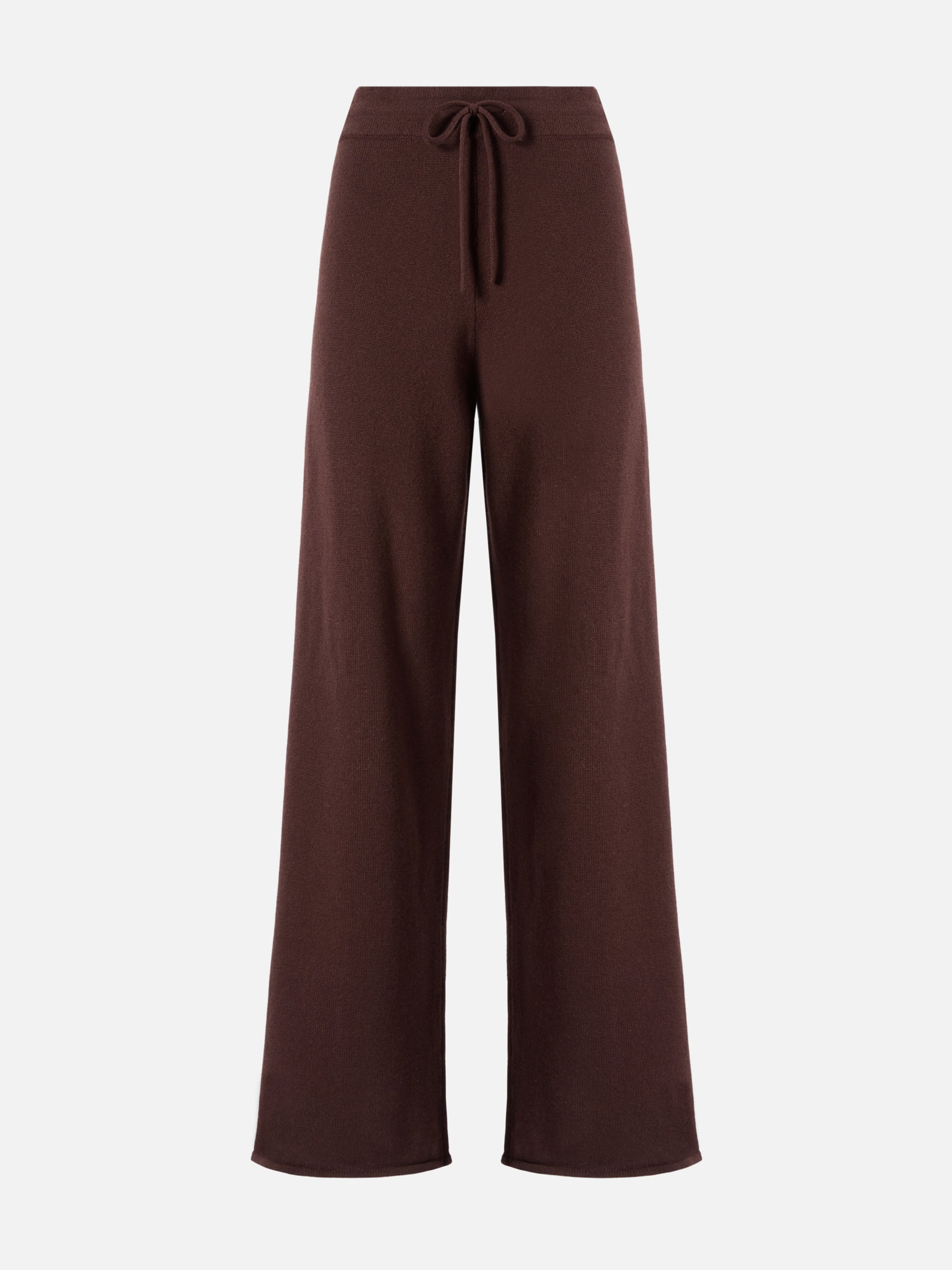 Cambon Palazzo-Hose aus reiner Wolle, braun, hoher Bund mit Kordelzug
