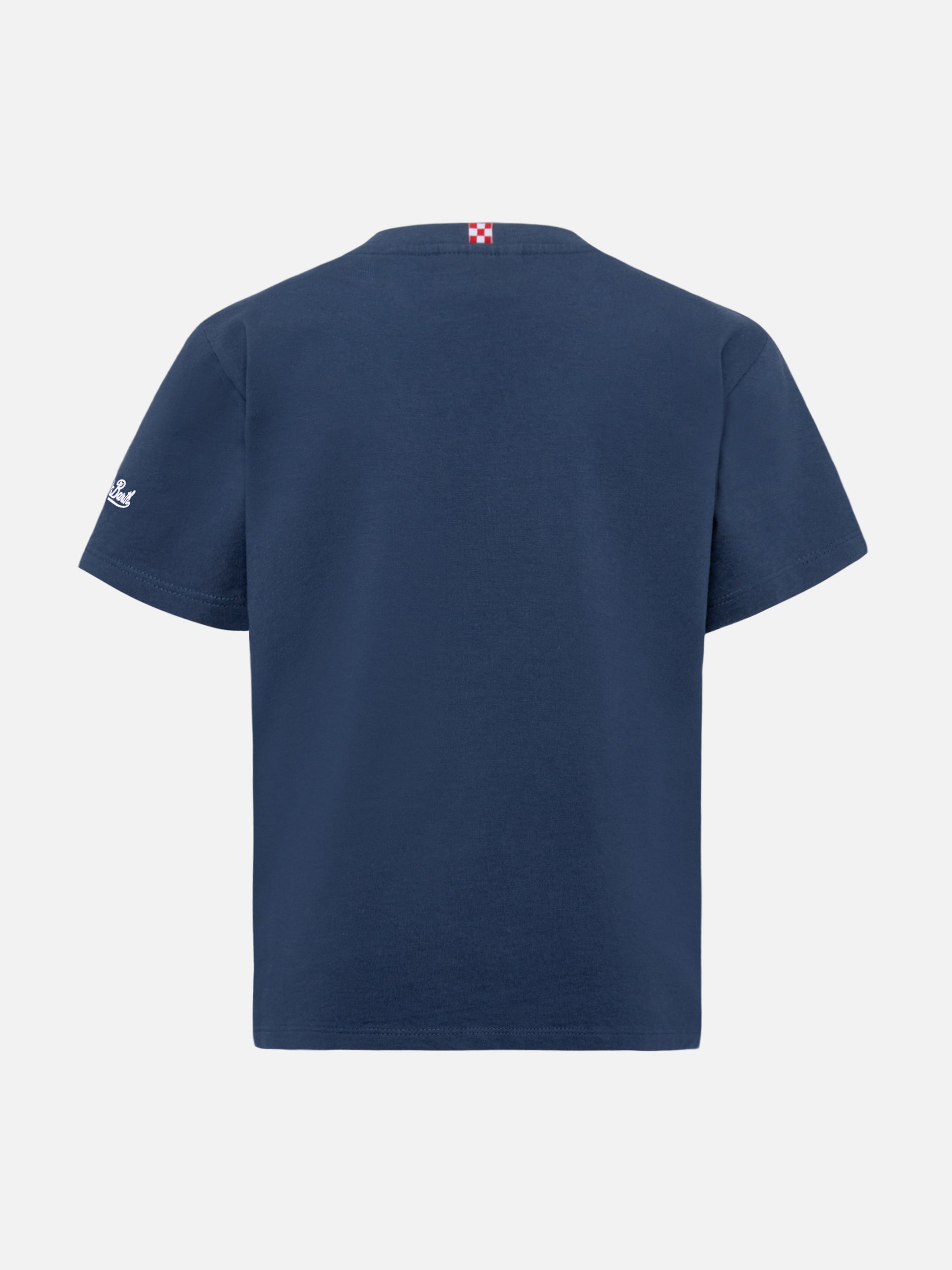 Cameron Baumwoll-T-Shirt in Blau mit Raga Volo-Stickerei