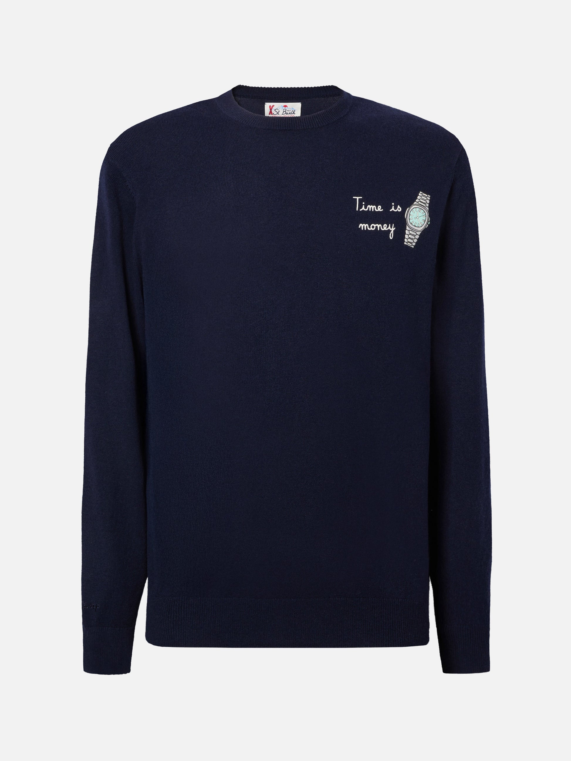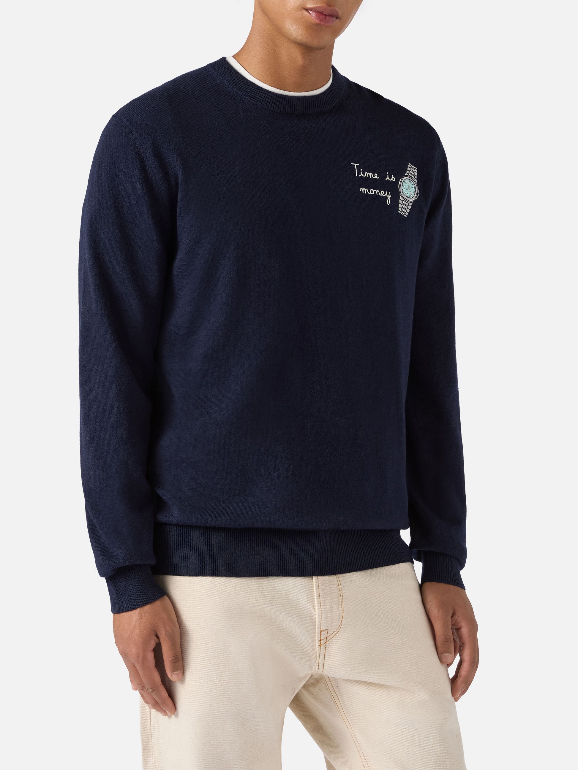 Rundhalspullover Heron Light mit gestickter „Time is Money“-Uhr.