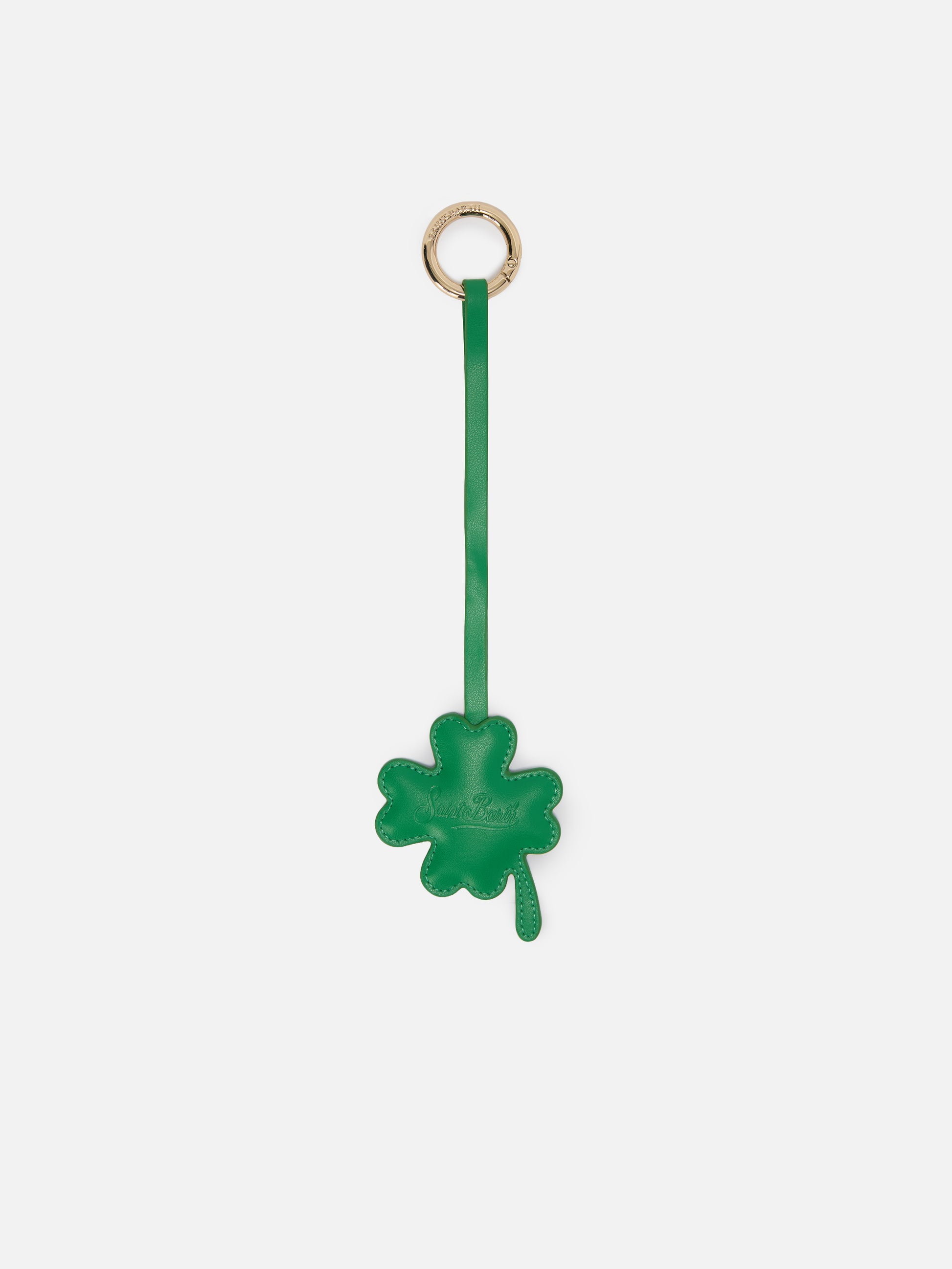 Taschenanhänger in Form eines vierblättrigen Kleeblatts aus grünem Leder