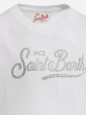 Mädchen-T-Shirt Elly aus Baumwolljersey mit Rundhalsausschnitt und Saint-Barth-Strassstickerei
