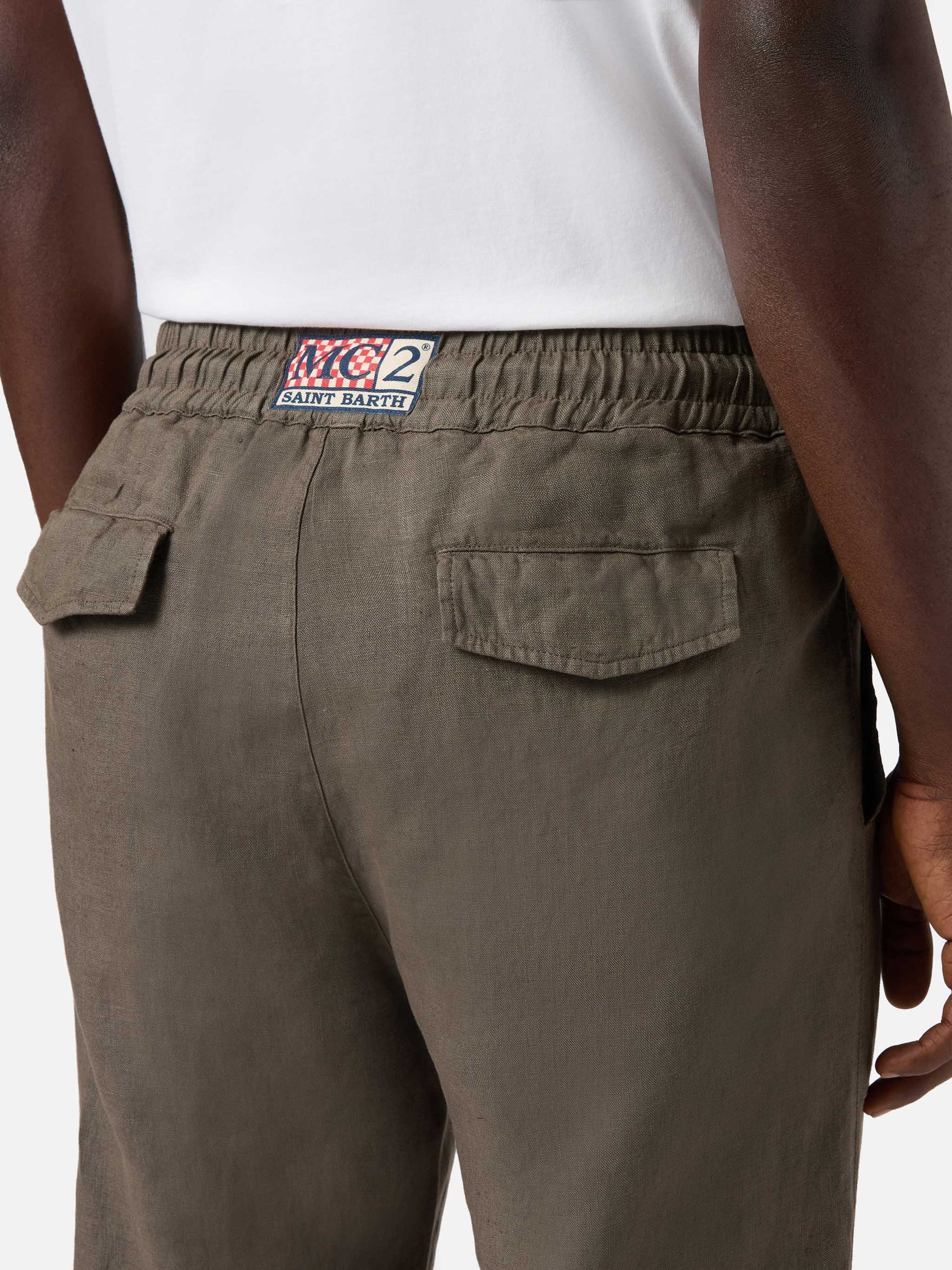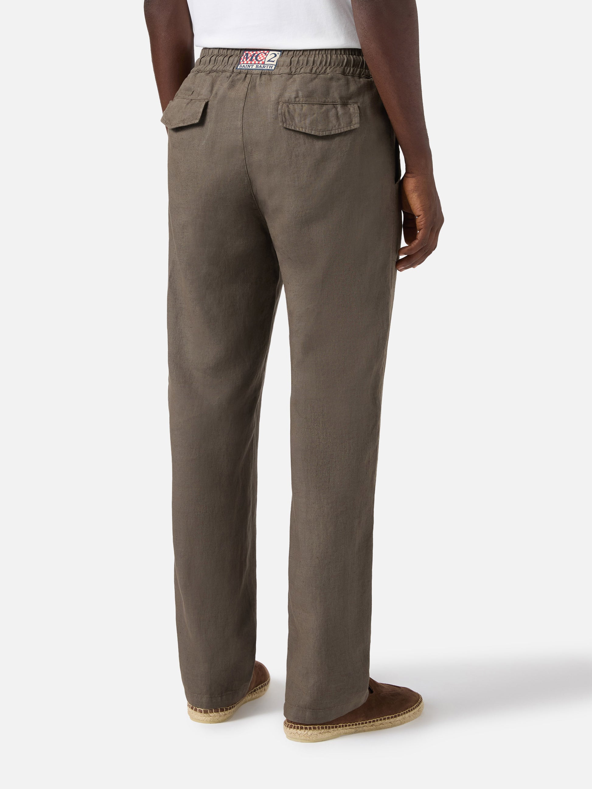 https://it.mc2saintbarth.com/de/products/khaki-calais-long-pants-in-pure-linen10781194486106Pantalone Calais lungo kaki in puro lino189,00https:files/UID_CAA000109930L-MAN-PANT-GREEN-MC2-MC2_2.jpghttps:files/UID_CAA000109930L-MAN-PANT-GREEN-MC2-MC2_2.jpgEURInStockPANT650948215130Alle Produkte – nur von Man649134276954AVADA - Bestseller278947365048Bermudashorts und Hosen für Herren278942318776Cocktail Capsule672324452698New In - Man654690877786Upselling_Man_PantsIl pantalone lungo Calais è realizzato in puro lino, un tessuto leggero e traspirante pensato per offrire comfort e naturalezza. Il design tinta unita valorizza l’estetica essenziale del modello. La cintura elasticizzata con coulisse in corda intrecciata con legatura bianco-rossa consente di regolare facilmente la vestibilità. Il modello è completato da tasche oblique sul davanti, tasche posteriori con aletta e bottoni logati ed etichetta logata applicata al centro sul retro della cintura. La gamba dritta e la vestibilità relaxed assicurano comfort e libertà di movimento.