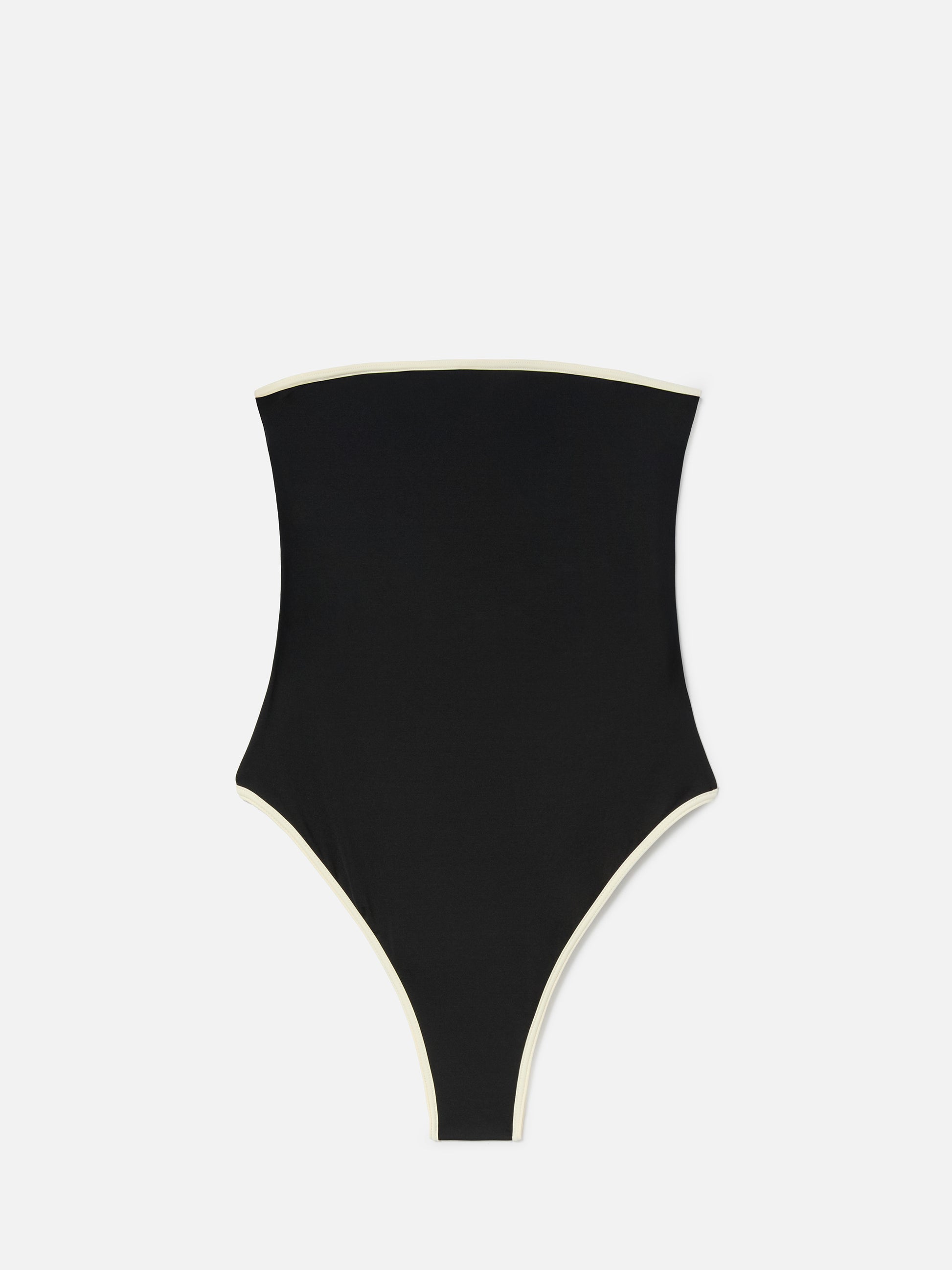 Costume intero Khyra String a fascia nero con dettagli a contrasto