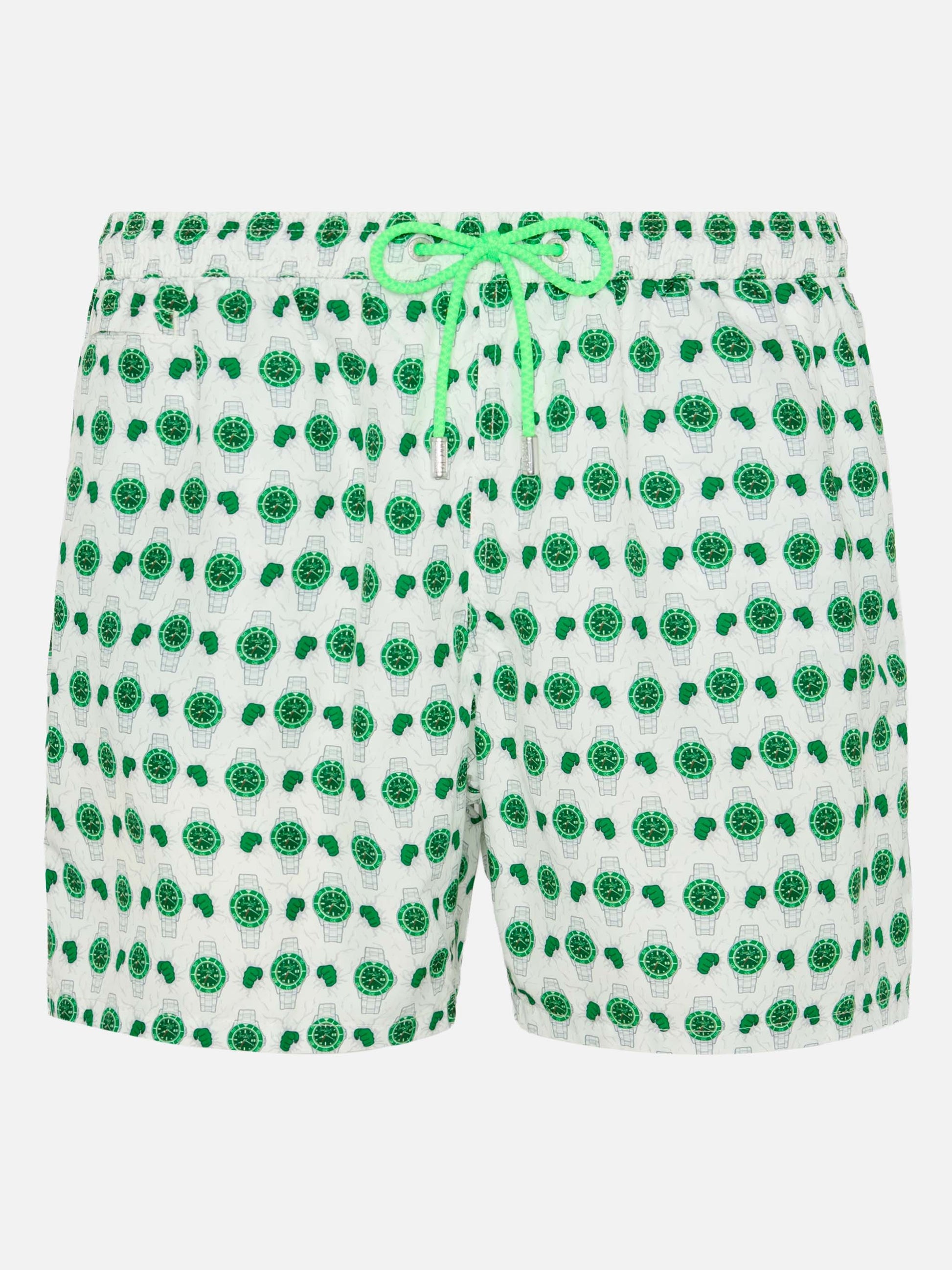 Badeshorts aus leichtem Stoff „Lighting“ mit Uhren-Print