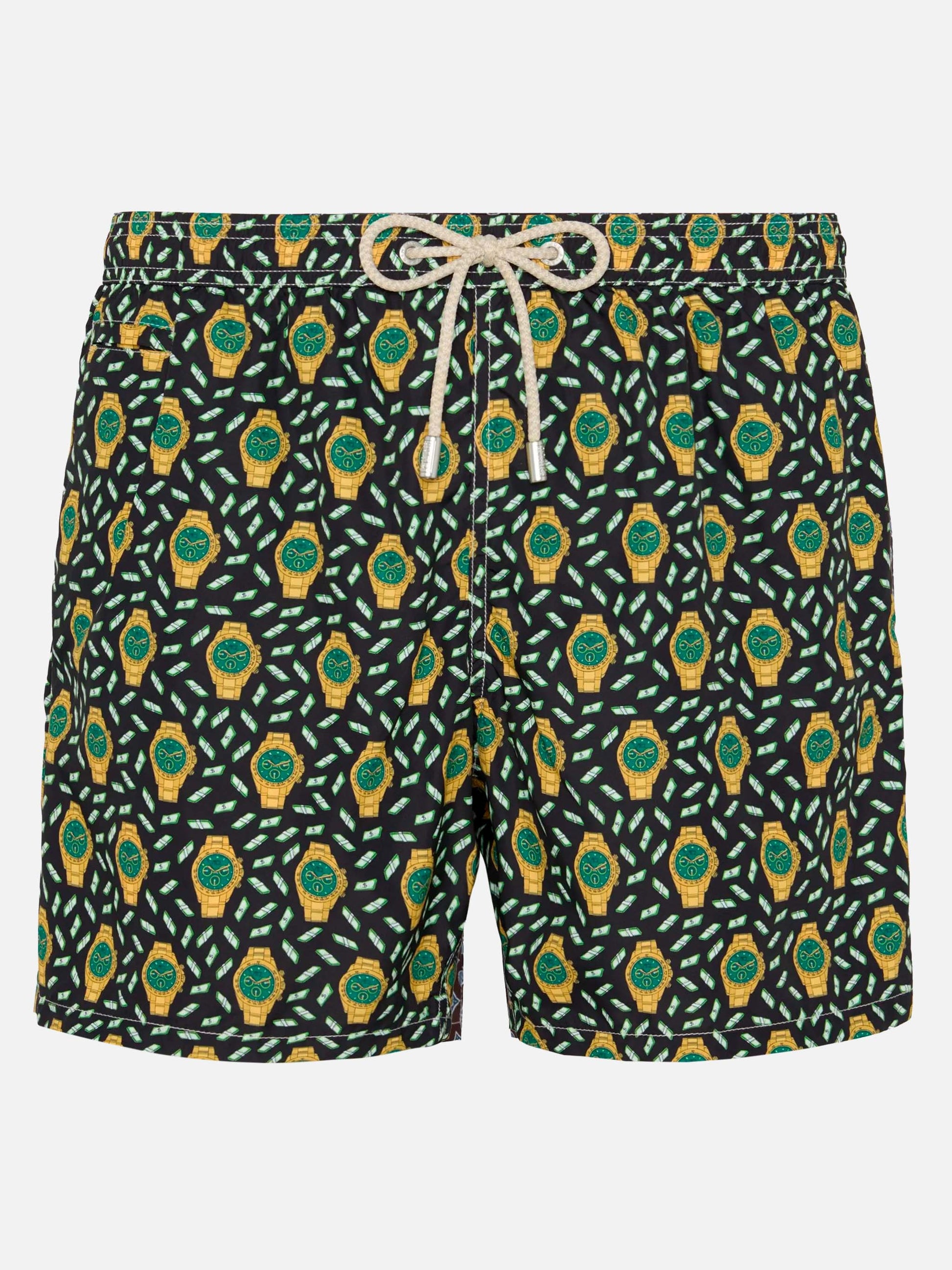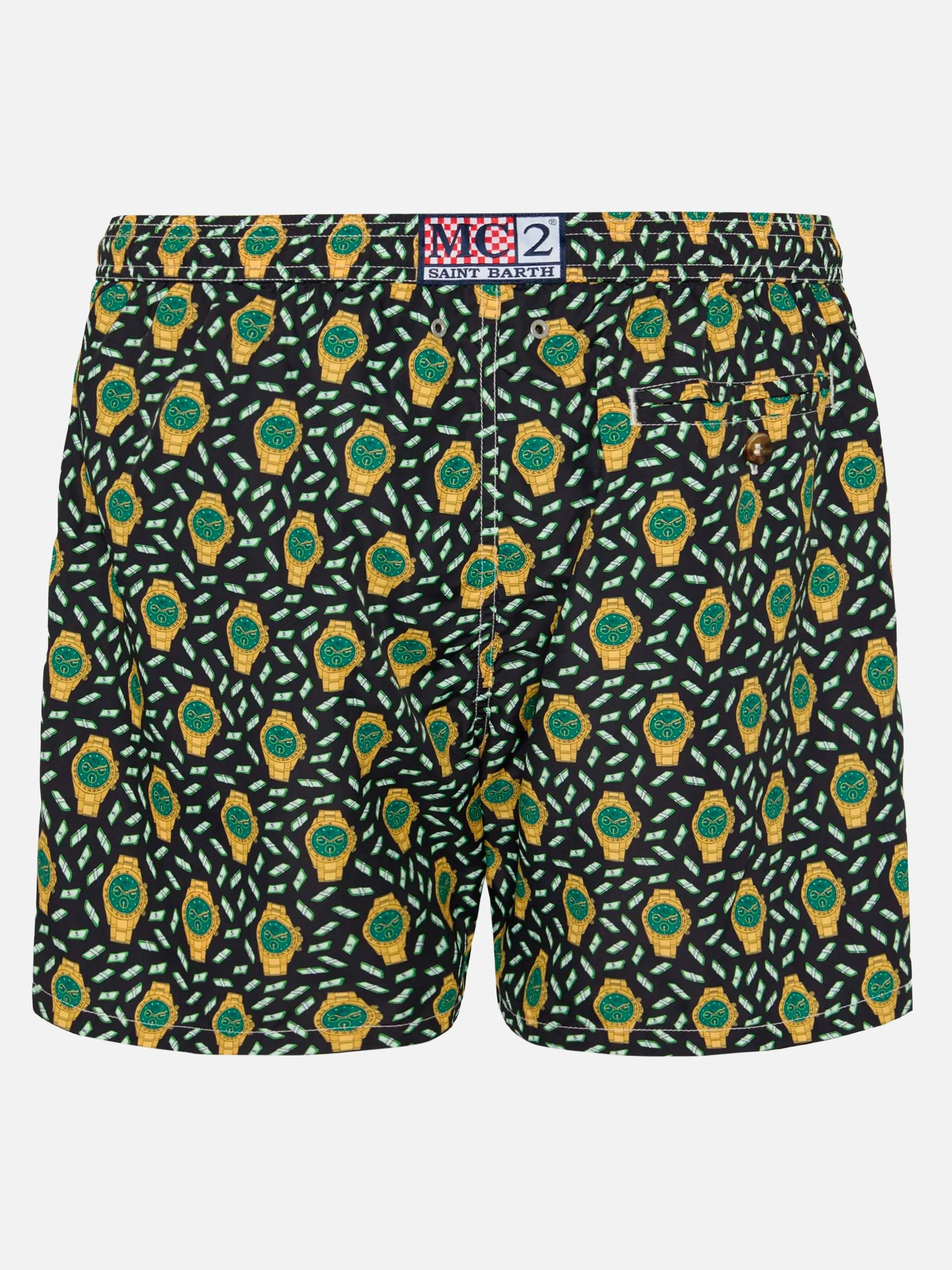 Badeshorts aus leichtem Stoff „Lighting“ mit Uhren-Print