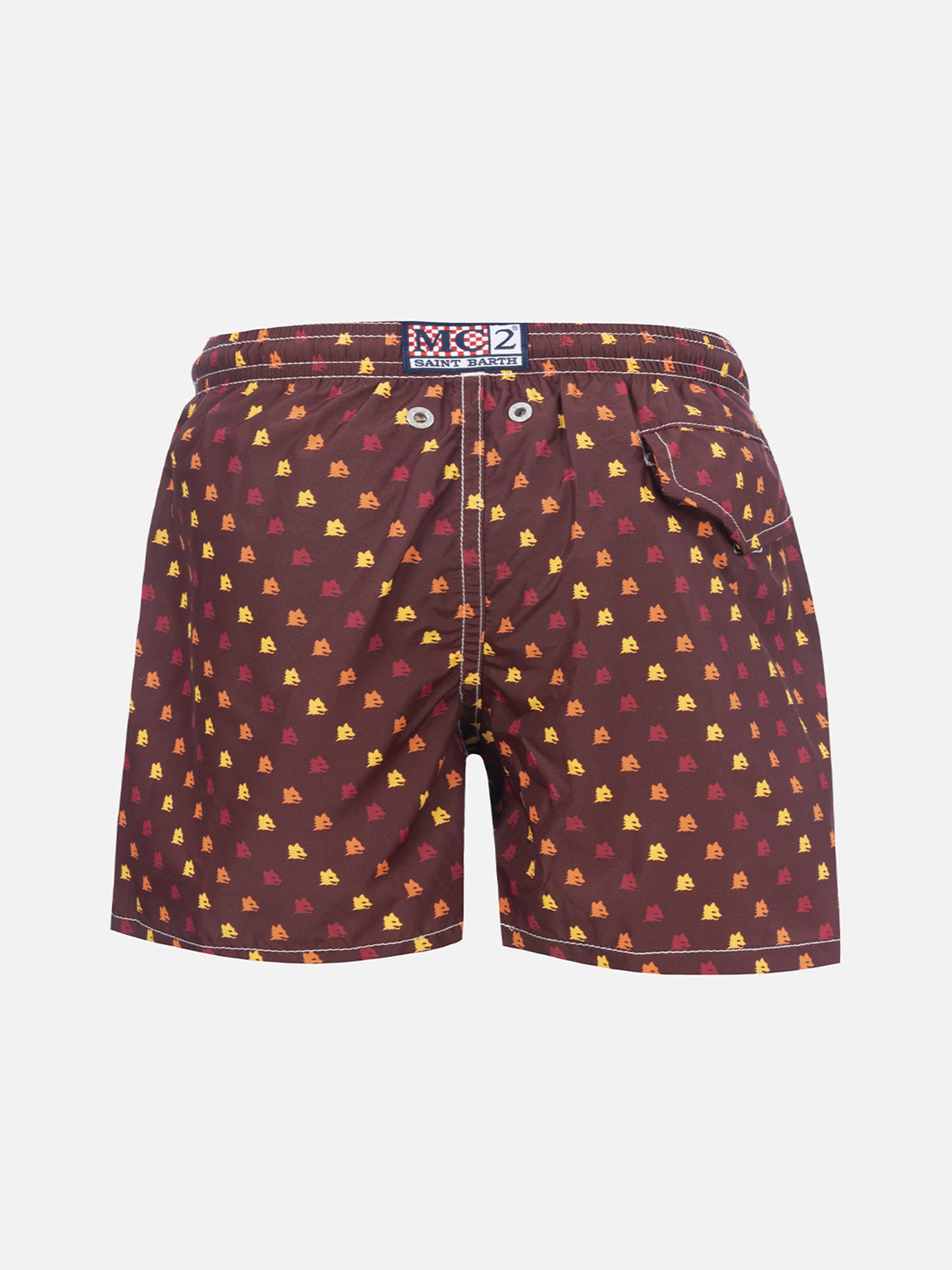 Leichte Jeans-Badeshorts aus Stoff mit Roma-Print | AS ROMA SPECIAL EDITION