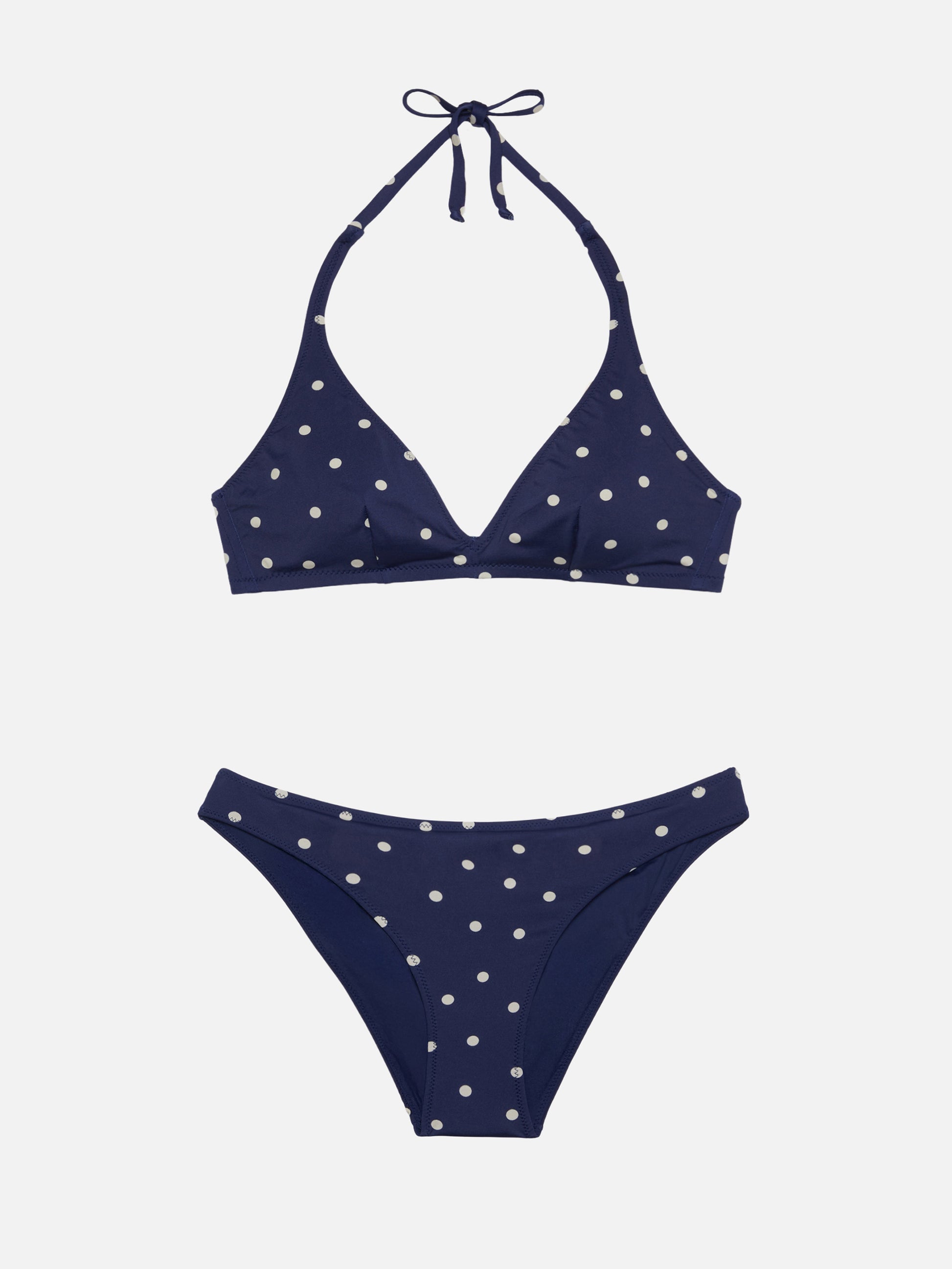 Gaia Maia Triangel-Bikini mit festem Bein, hochgeschnittenem Höschen und Polka-Dot-Muster