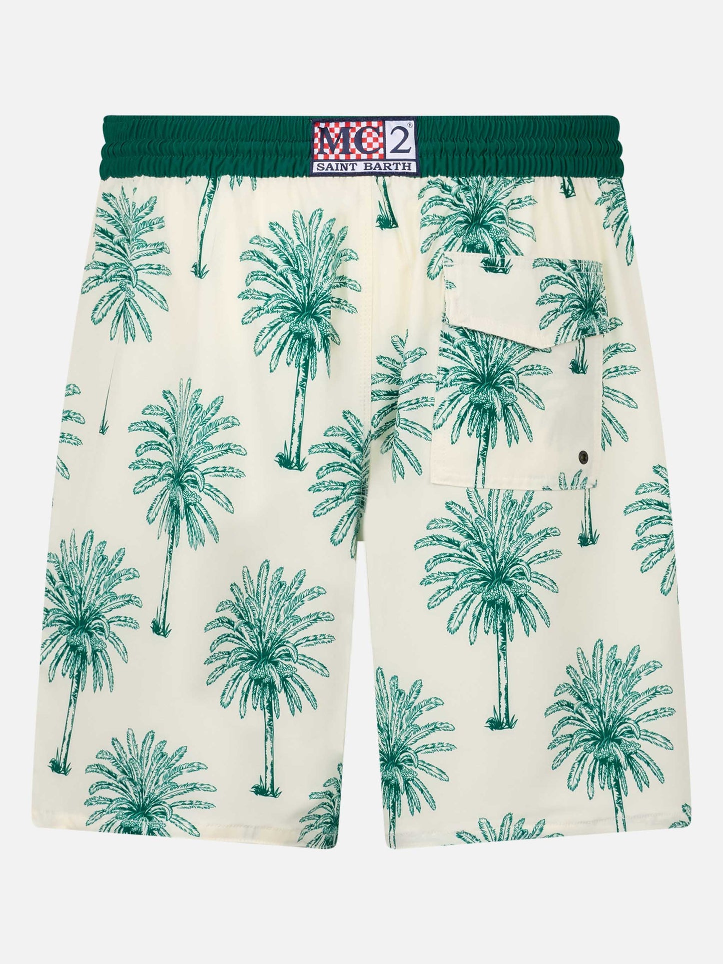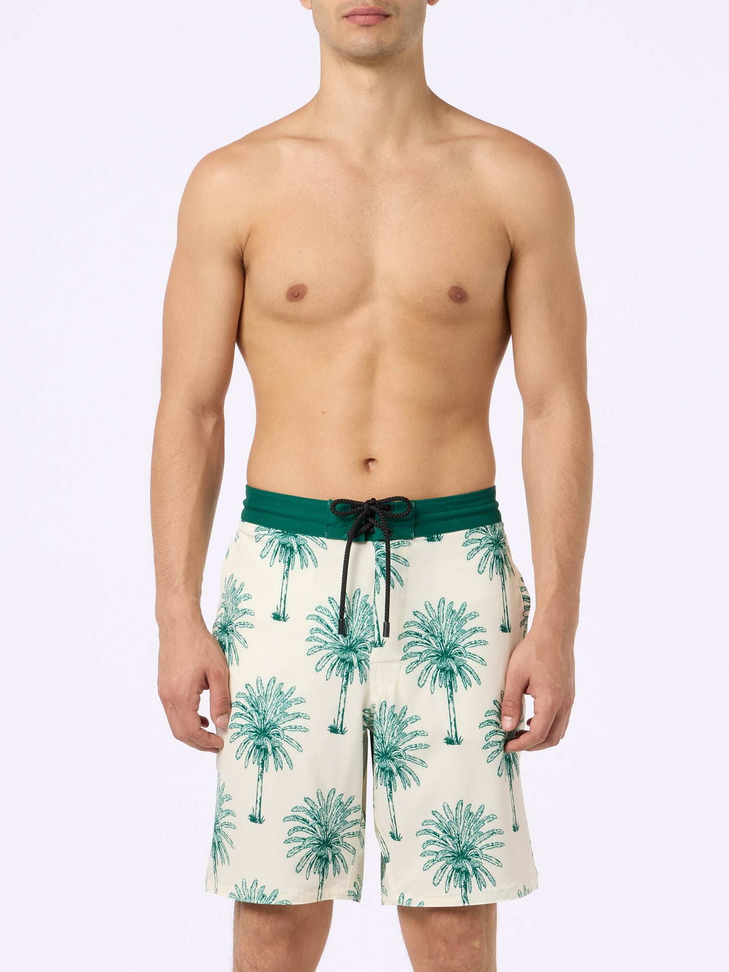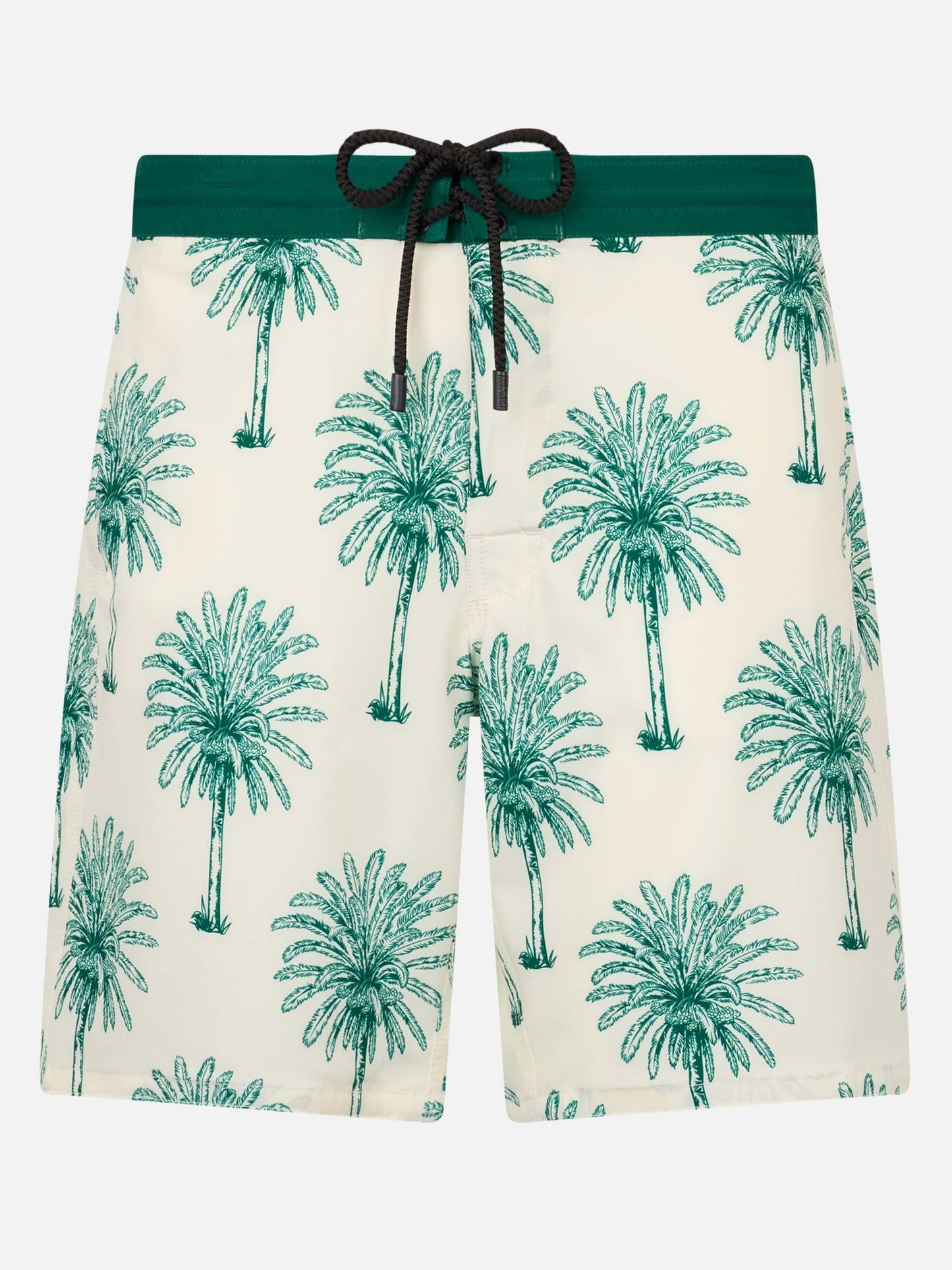 Lange, dehnbare Comfort Surf Badeshorts mit Palmenmuster