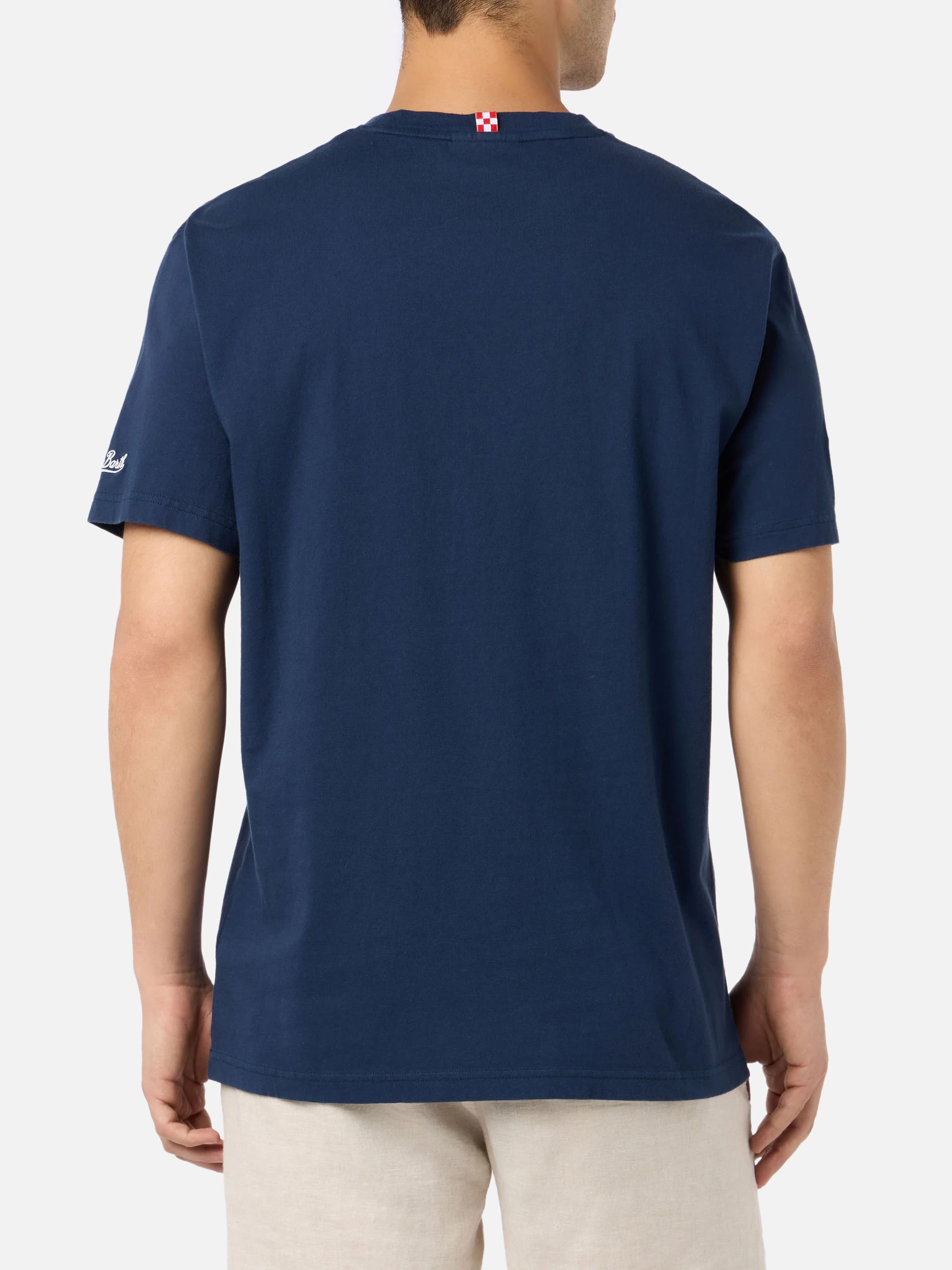 Wir präsentieren das T-Shirt Man, das kultige Herren-T-Shirt von MC2 Saint Barth, mit kräftigen und großen Drucken zu den beliebtesten Themen der Marke, darunter Reisen, Lifestyle, kultige Reiseziele, Cocktails und die coolsten Kooperationen. Dieses Herren-T-Shirt mit halblangen Ärmeln ist aus 100 % Baumwolljersey mit stückgefärbtem Finish gefertigt und wiegt 180 Gramm für ein leichtes Tragegefühl. Es bietet eine normale Passform für bequemen Tragekomfort und ist mit einem Druck und einer Stickerei auf der Brust sowie einer MC2 Saint Barth-Stickerei am unteren Rand des linken Ärmels verziert. T-Shirt aus Baumwolle für Herren T-Shirt für Herren Weißer Hintergrund Avanti Lazio, Famoje 3 Goal!-Stickerei auf der linken Brust Stückgefärbt Rundhalsausschnitt Kurze Ärmel Aufgestickte MC2 Saint Barth-Signatur auf dem linken Ärmel Zusammensetzung: 100 % Baumwolle. Klassische Passform Größe L hat eine Körperlänge von 72 cm mit einer Erhöhung um 2 cm pro Größe, eine Schulterbreite von 48 cm mit einer Erhöhung um 2 cm pro Größe und einen Brustumfang von 56 cm mit einer Erhöhung um 2,5 cm pro Größe. Das Model ist 185 cm groß und trägt Größe L
