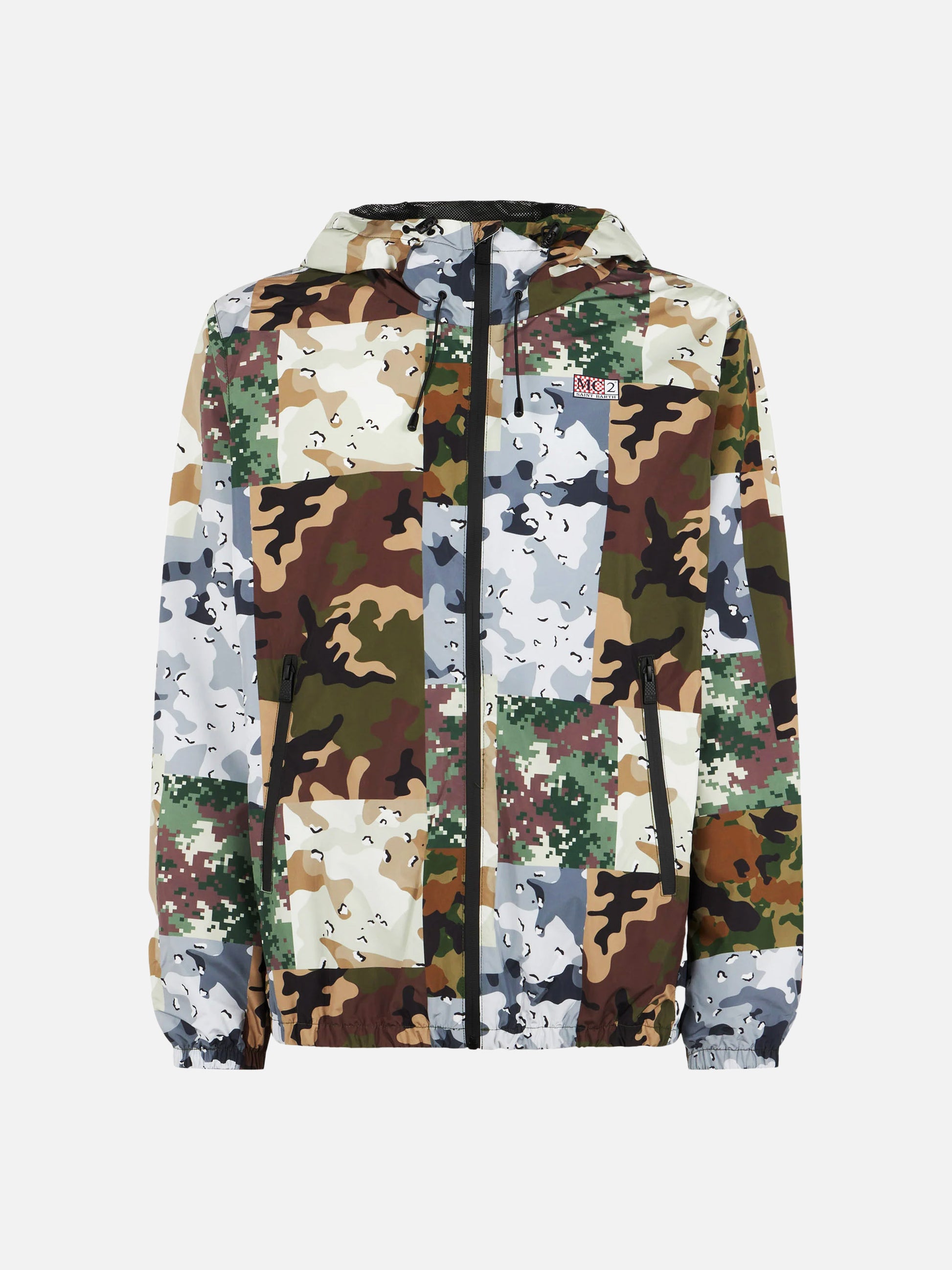Leichte Herren-Windjacke mit Kapuze und Tarnmuster